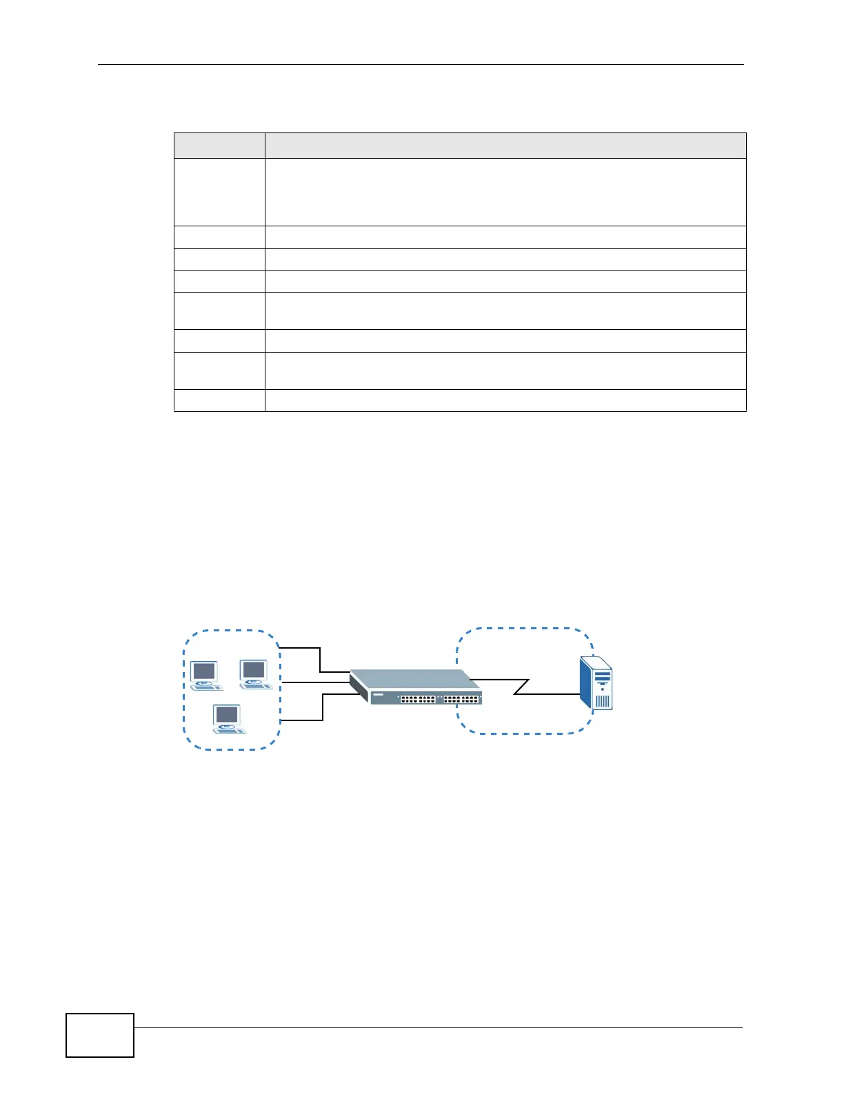 The following figure shows a network example where ports 1, 2 and 3 on the