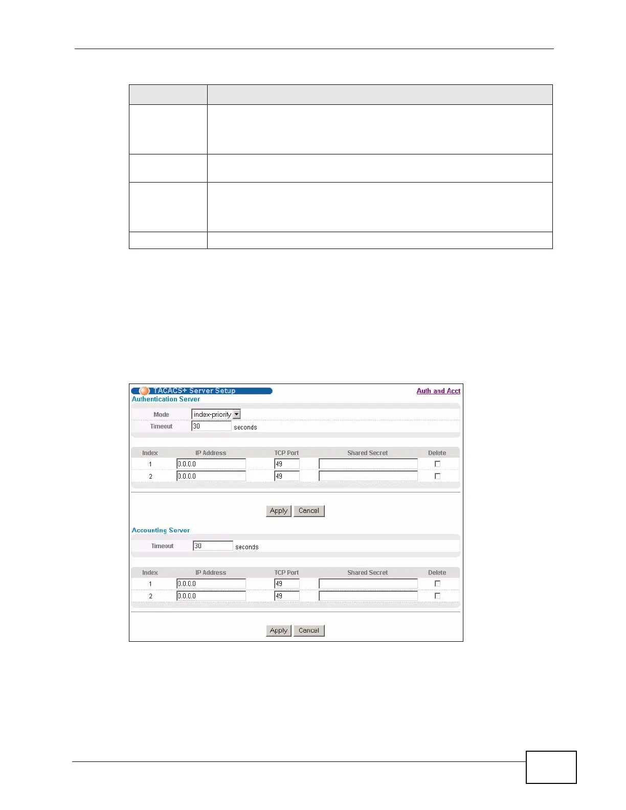 Use this screen to configure your TACACS+ server settings. See Section 25.1.2 on
