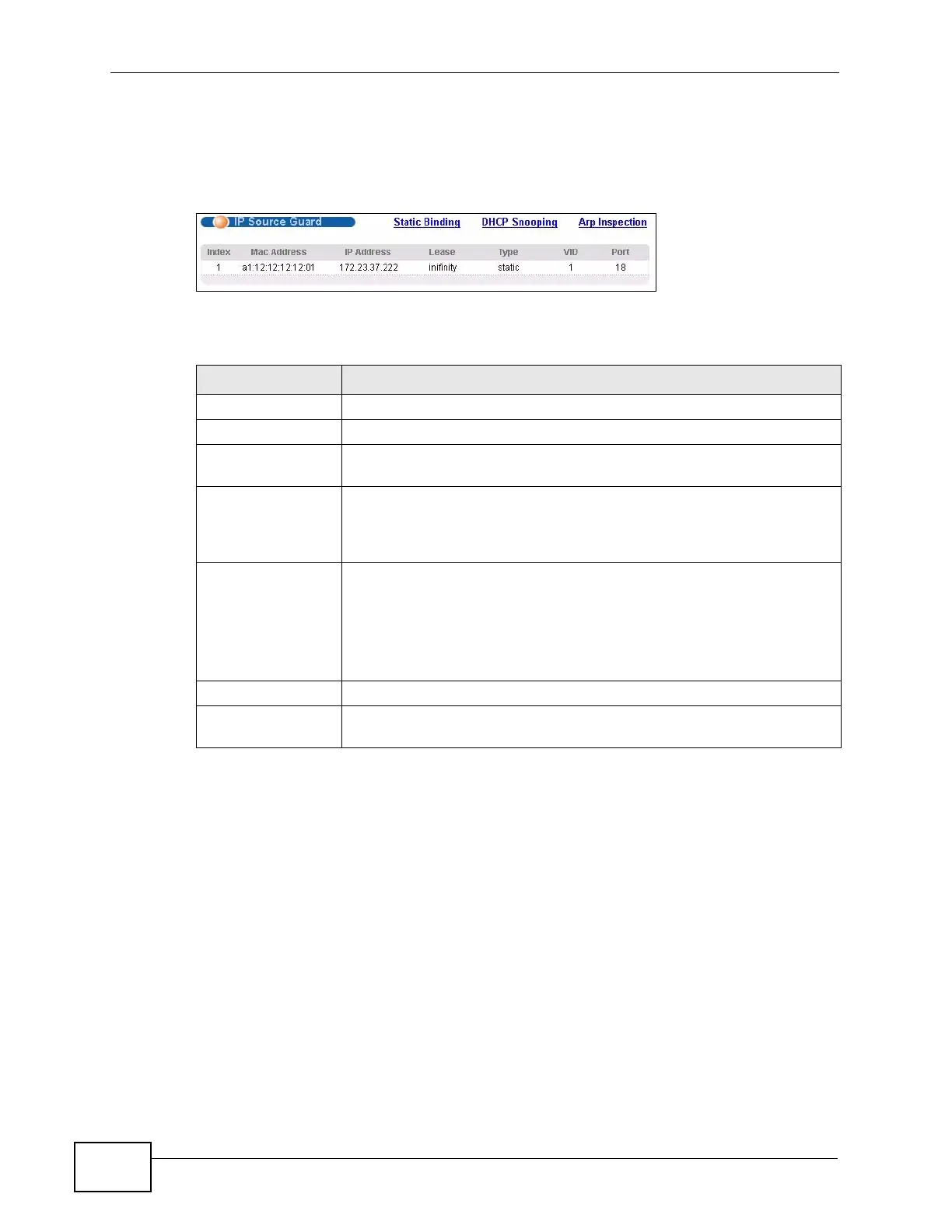 Use this screen to manage static bindings for DHCP snooping and ARP inspection.