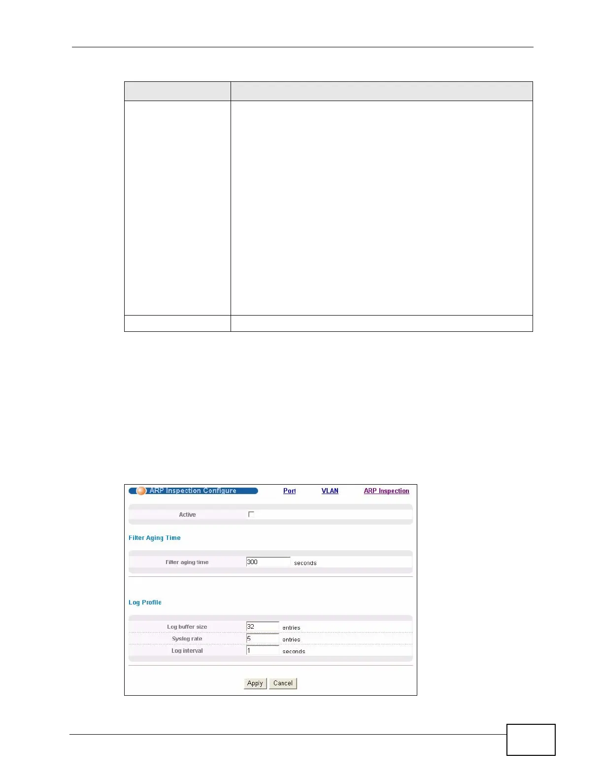 Use this screen to enable ARP inspection on the Switch. You can also configure the