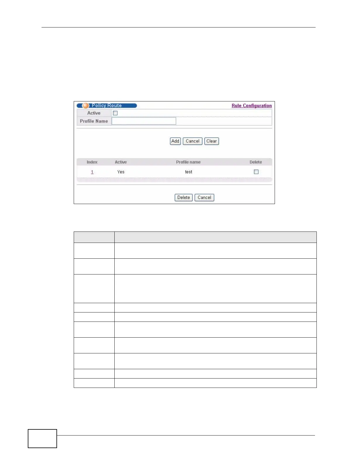 screen as shown. Use this screen to configure a policy routing profile, which can