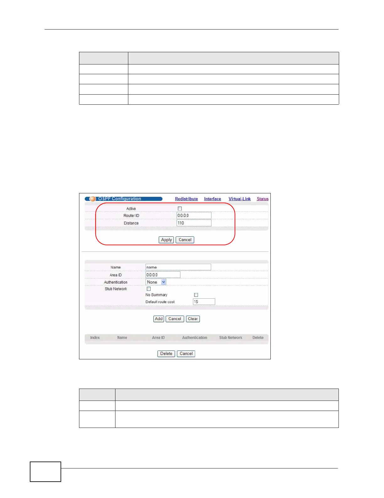 OSPF and the Configuration link to display the OSPF Configuration screen.