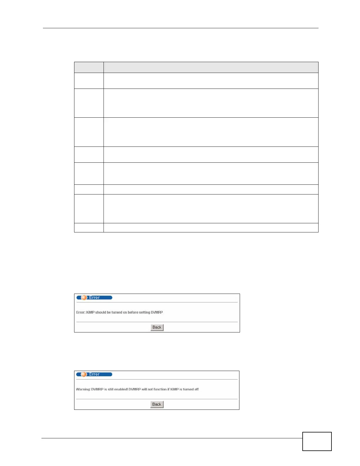 Figure 179 DVMRP: Unable to Disable IGMP Error
