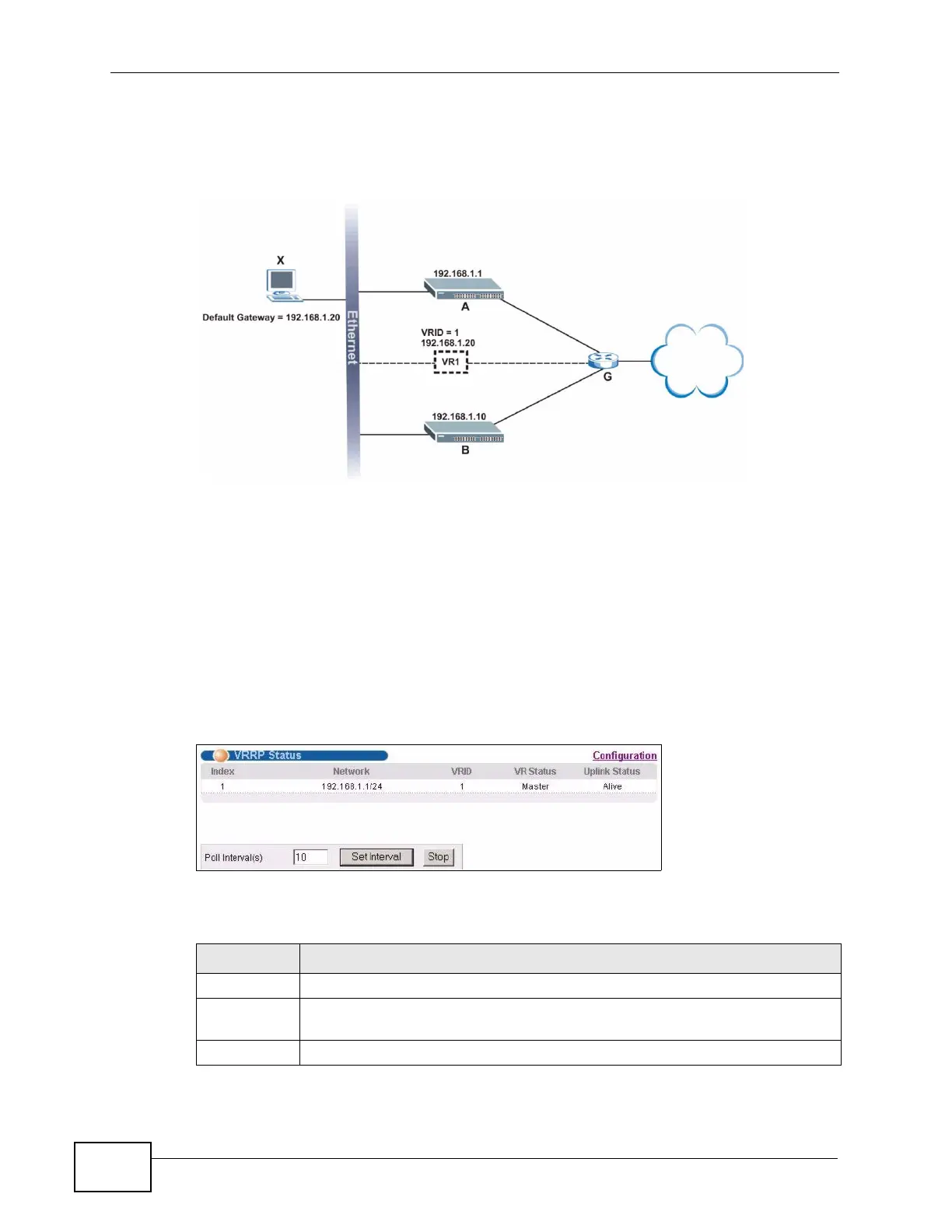 Click IP Application > VRRP in the navigation panel to display the VRRP Status