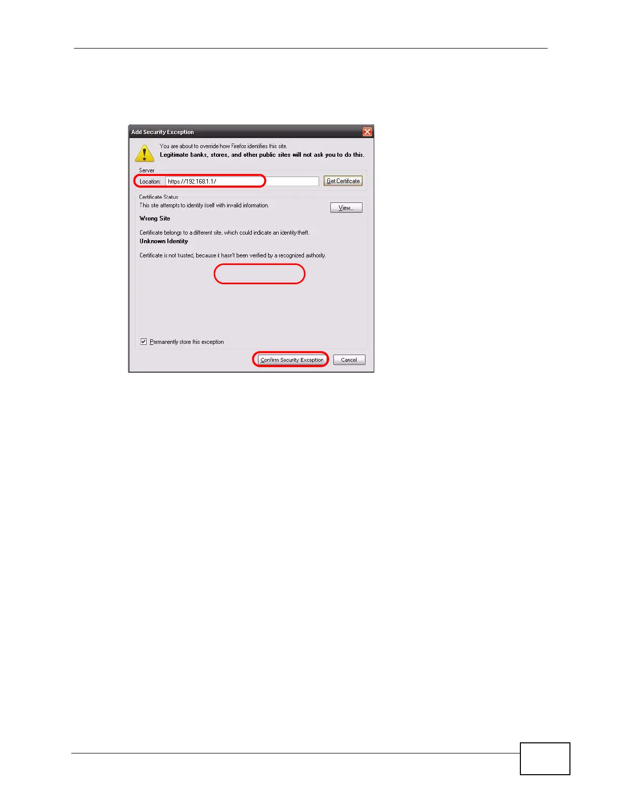 Confirm the HTTPS server URL matches. Click Confirm Security Exception to