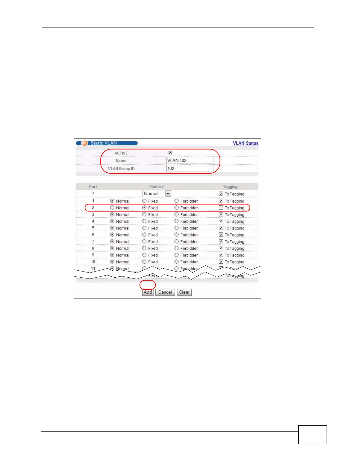 5 Select Fixed to configure port 2 to be a permanent member of this VLAN.
