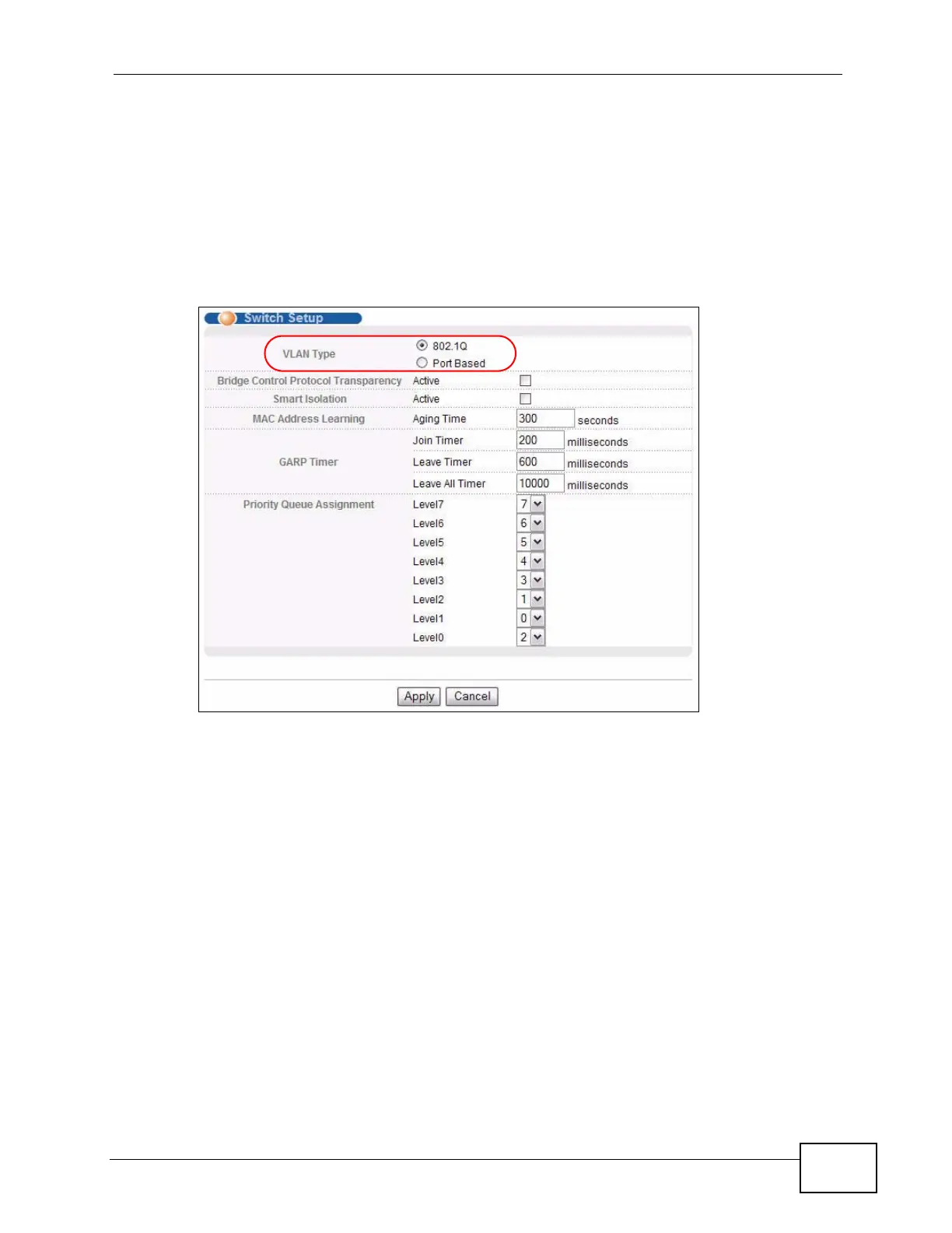 2 Go to Basic Setting > Switch Setup and set the VLAN type to 802.1Q. Click