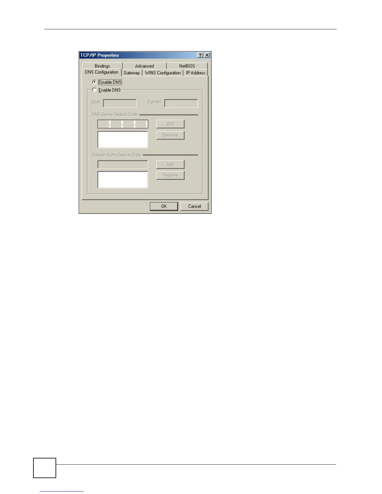 Figure 410 Windows 95/98/Me: TCP/IP Properties: DNS Configuration