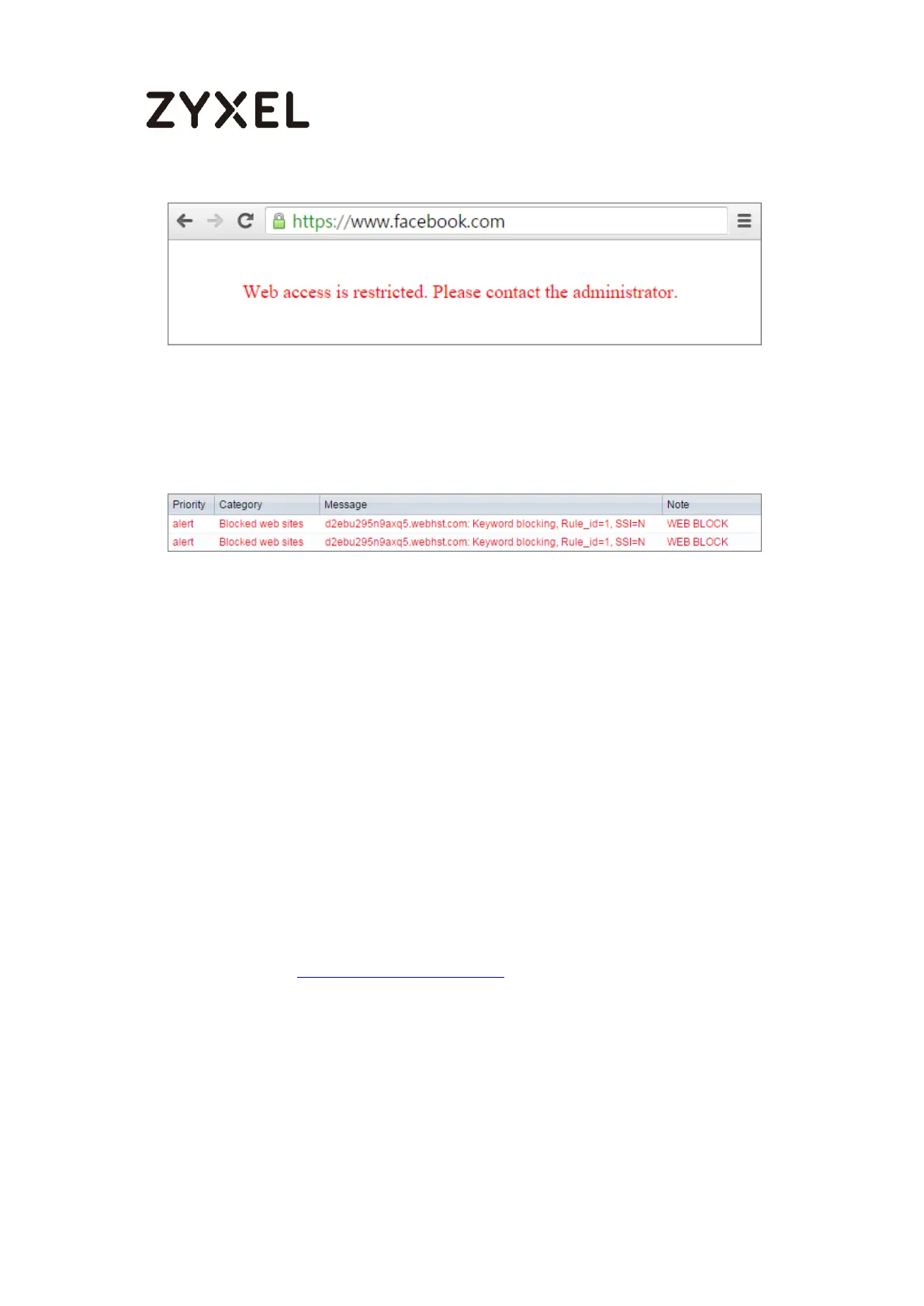 Go to the ZyWALL/USG Monitor > Log, you will see [alert] log message such as