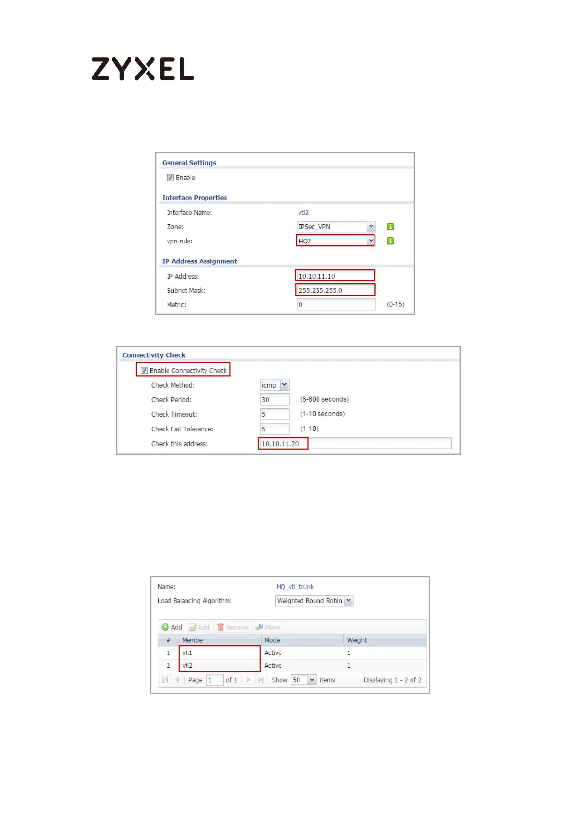 CONFIGURATION > Network > Interface > VTI > vti2 > Connectivity Check
