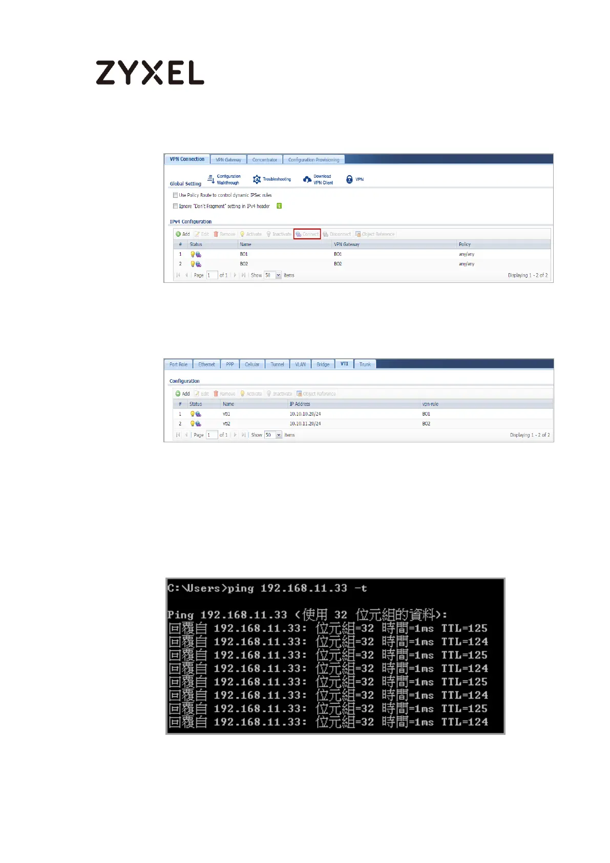 PC of USG2 (192.168.11.33) > Window 7 > cmd > ping 192.168.1.34