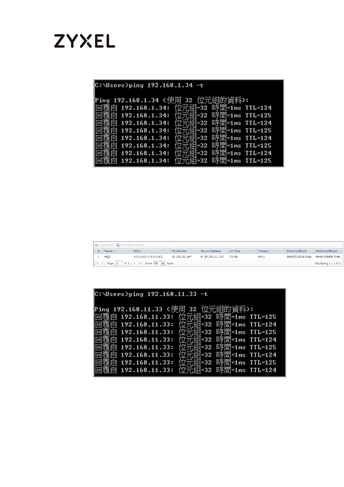Then ping from a PC in LAN1 of USG1 to a PC in LAN1 of USG2 and