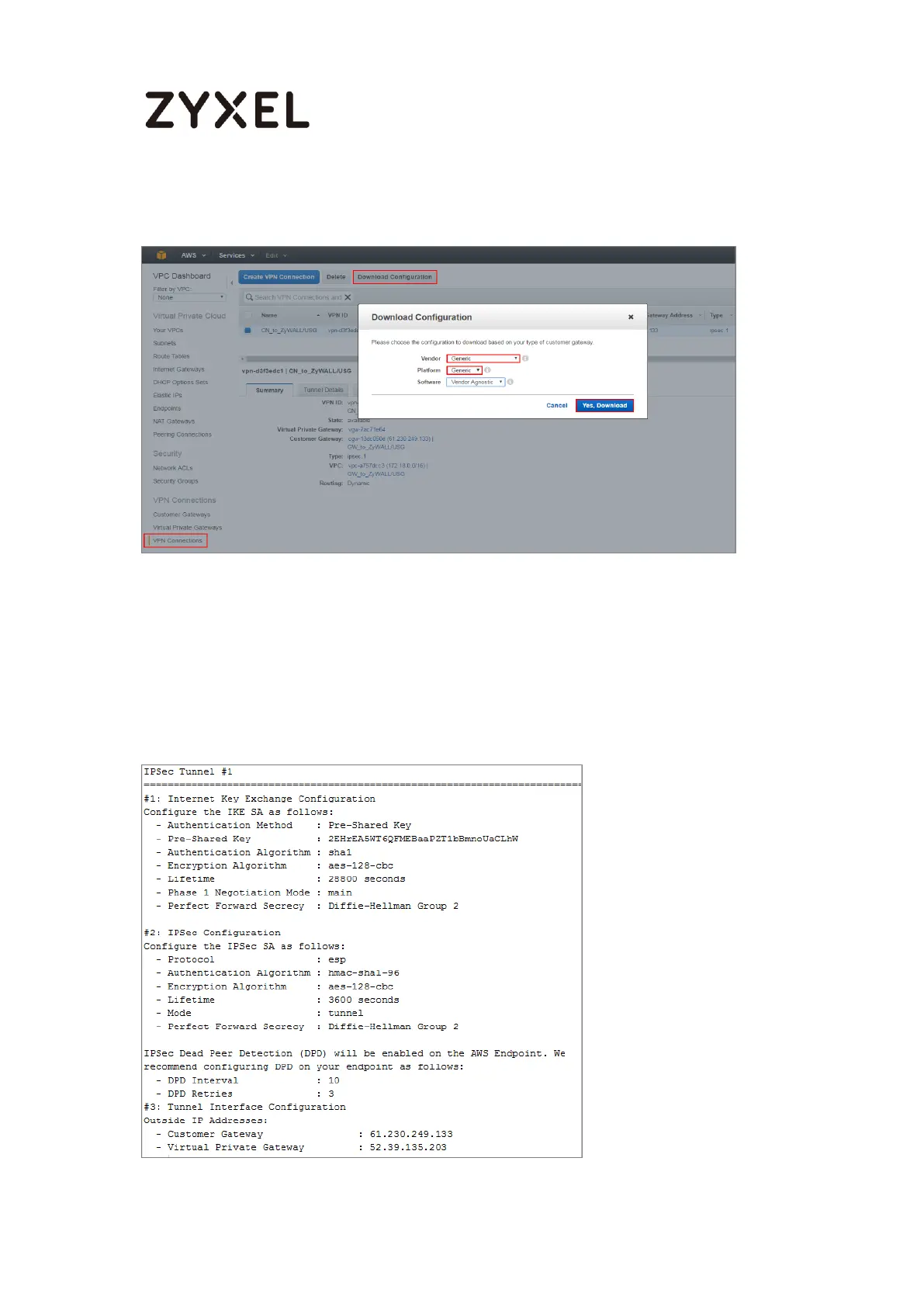 7 Open the downloaded configuration txt. file, it displays IKE SA, IPSec SA and
