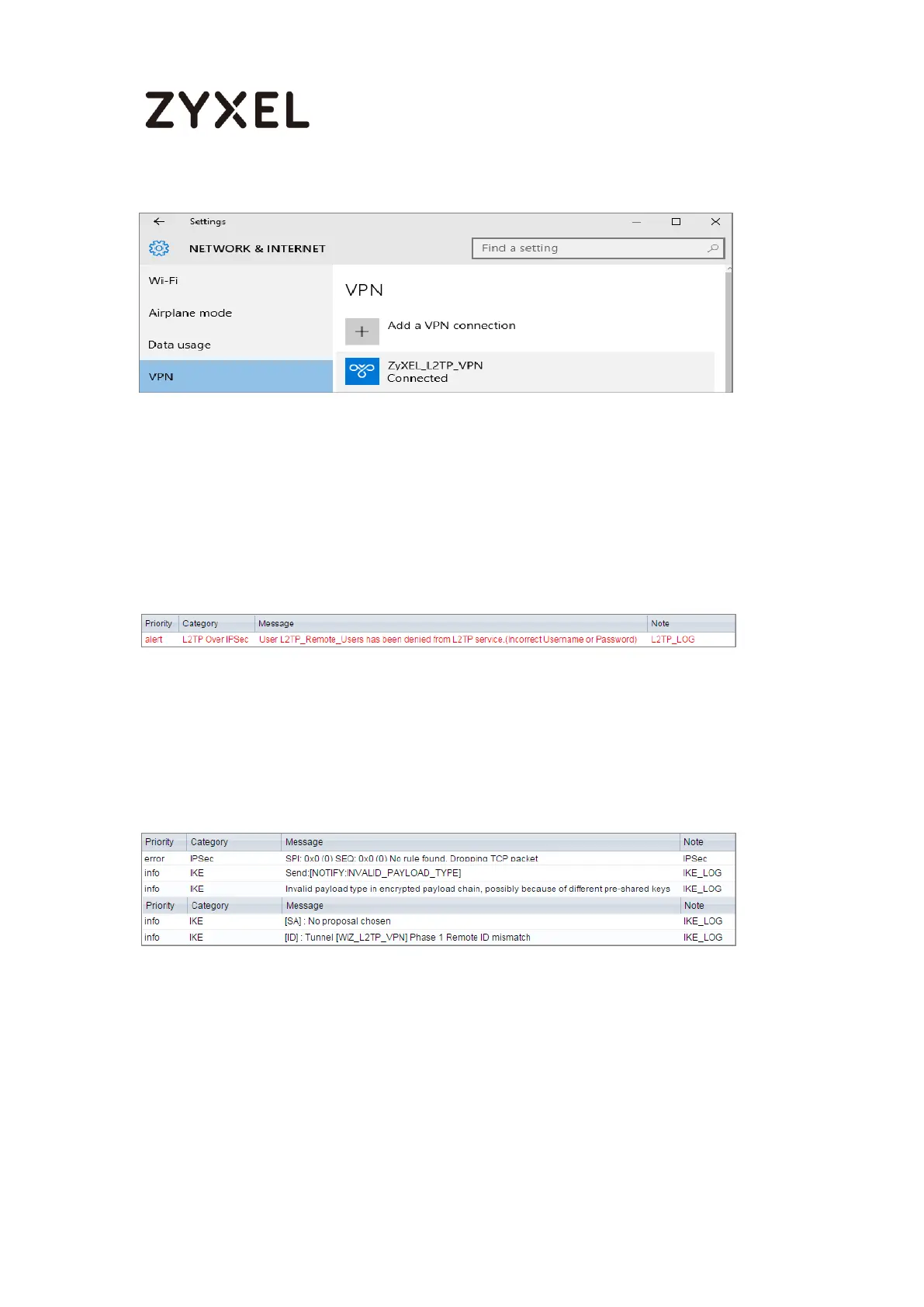 10 If you see [info] or [error] log message such as below, please check ZyWALL/USG