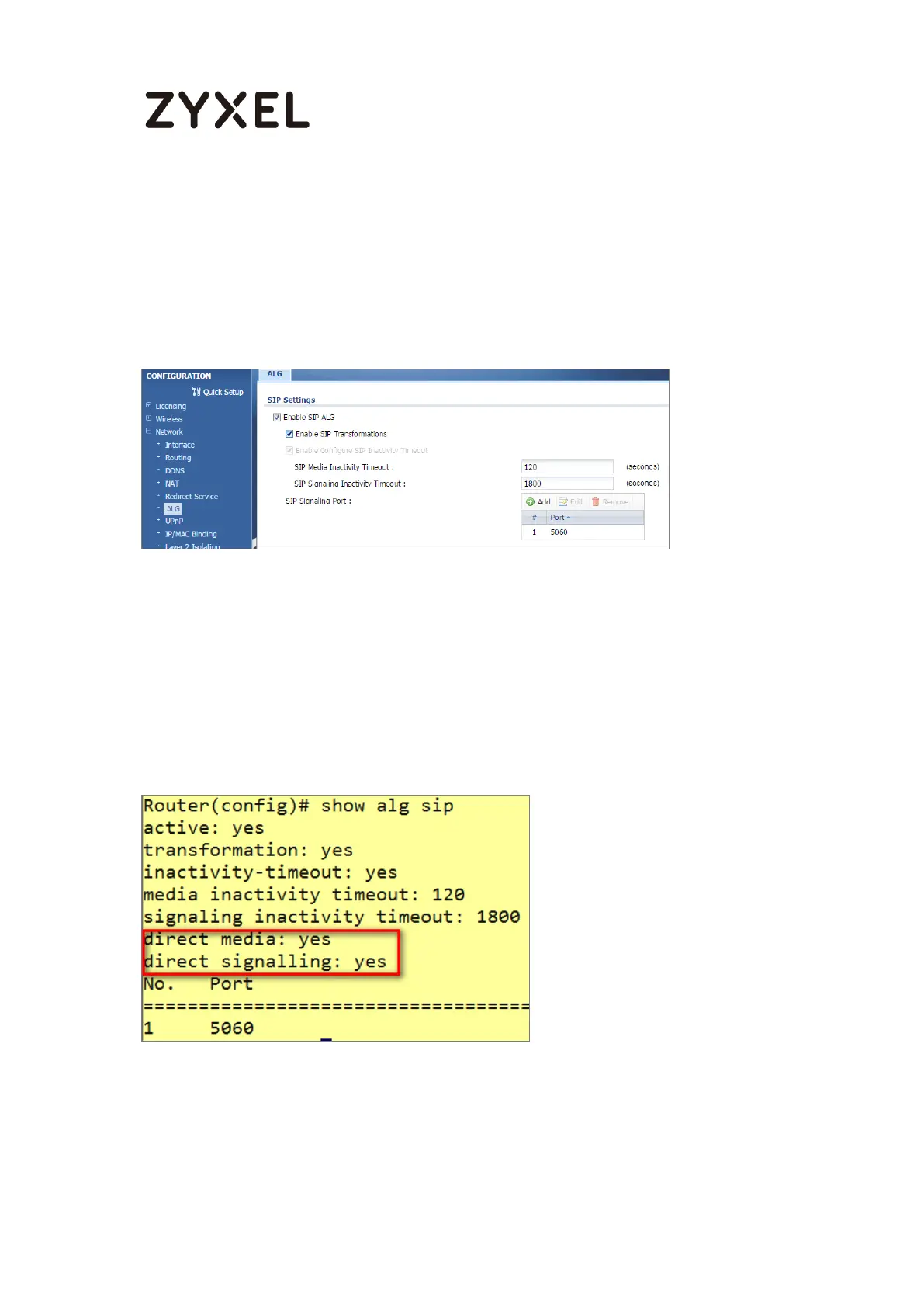 Figure 203 CONFIGURATION > Network > ALG