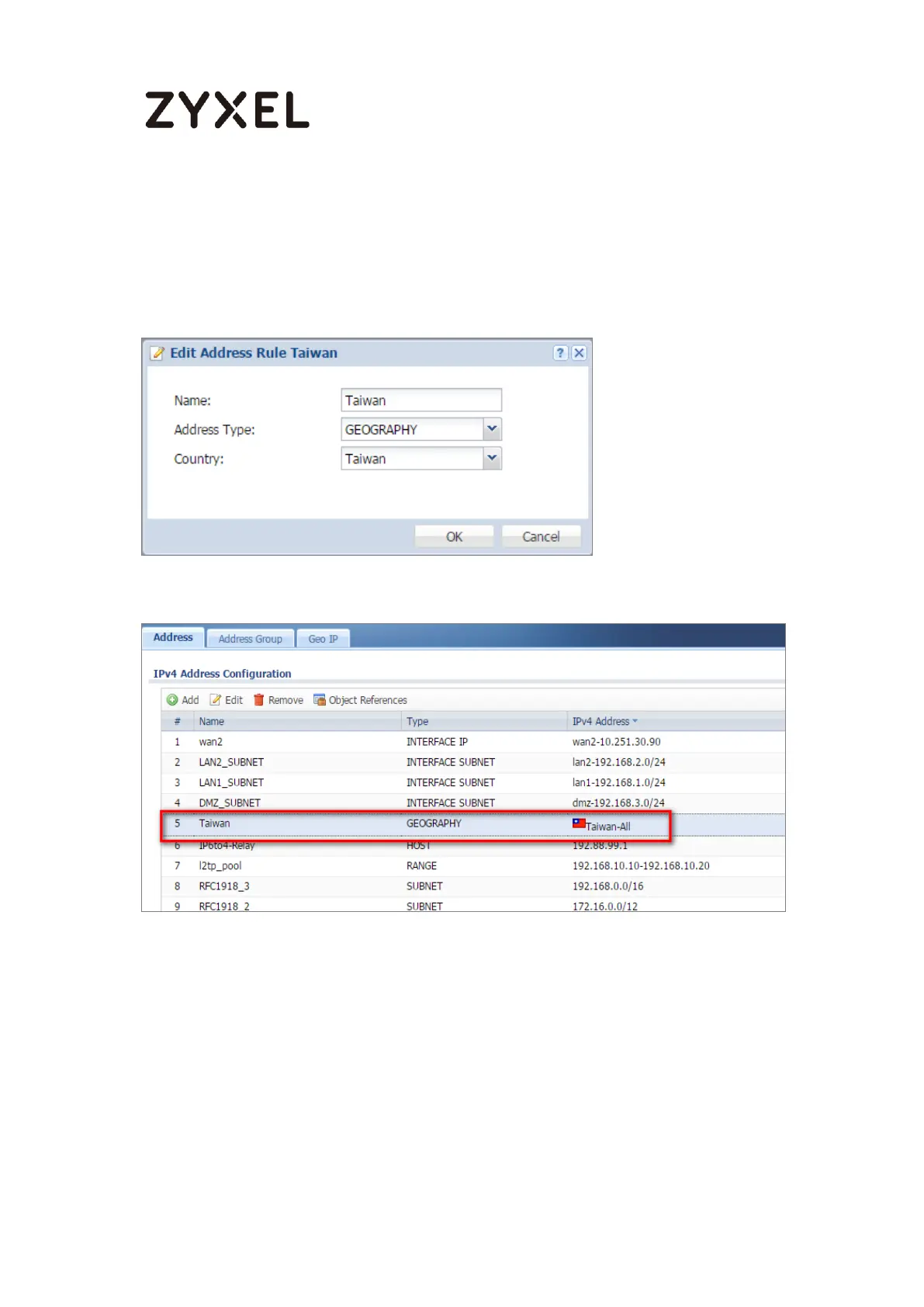 ZyXEL Communications ZyWALL 310 - Set up the Address Objet with Geo IP on the Zywall;Usg