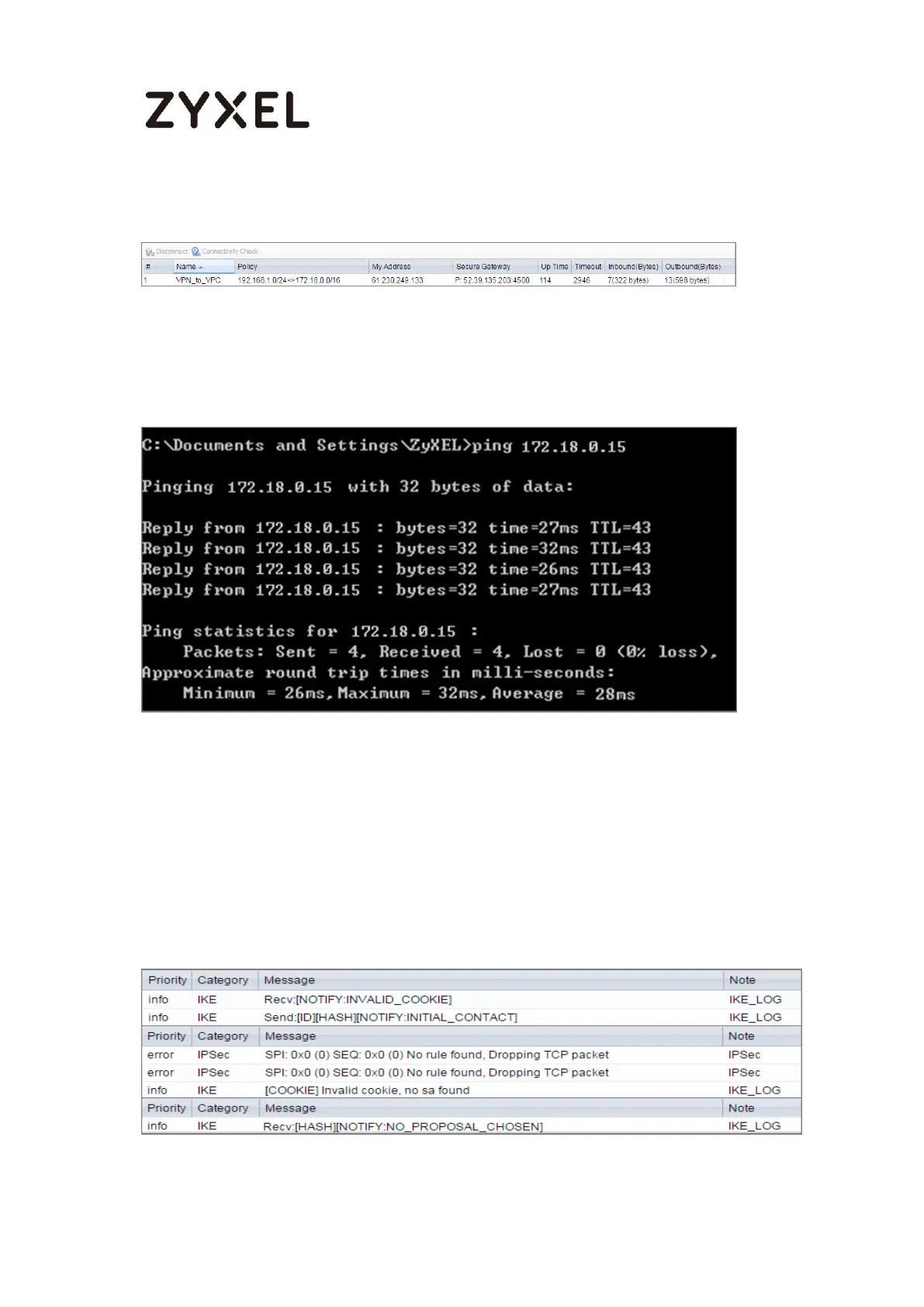 If you see below [info] or [error] log message, please check ZyWALL/USG Phase