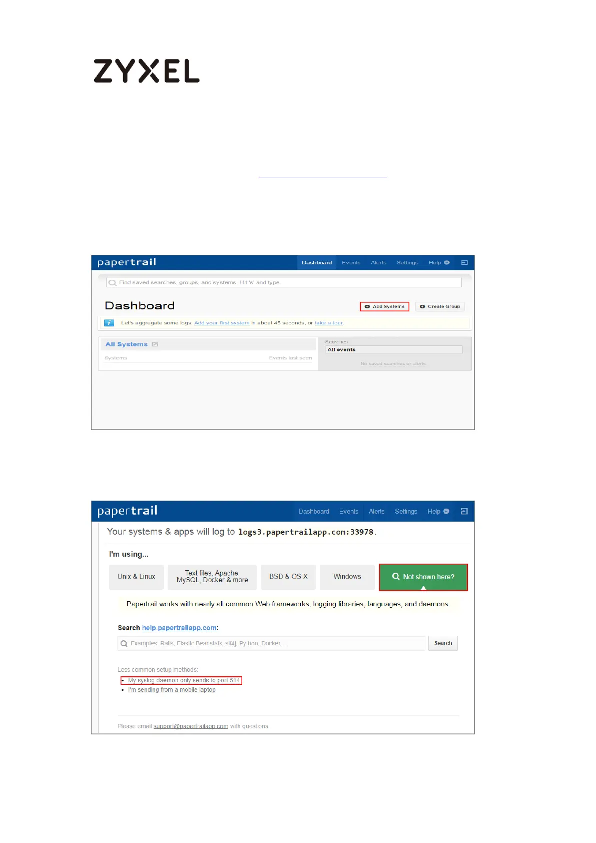 Set Up the Syslog Server (Use Papertrail syslog in this example)