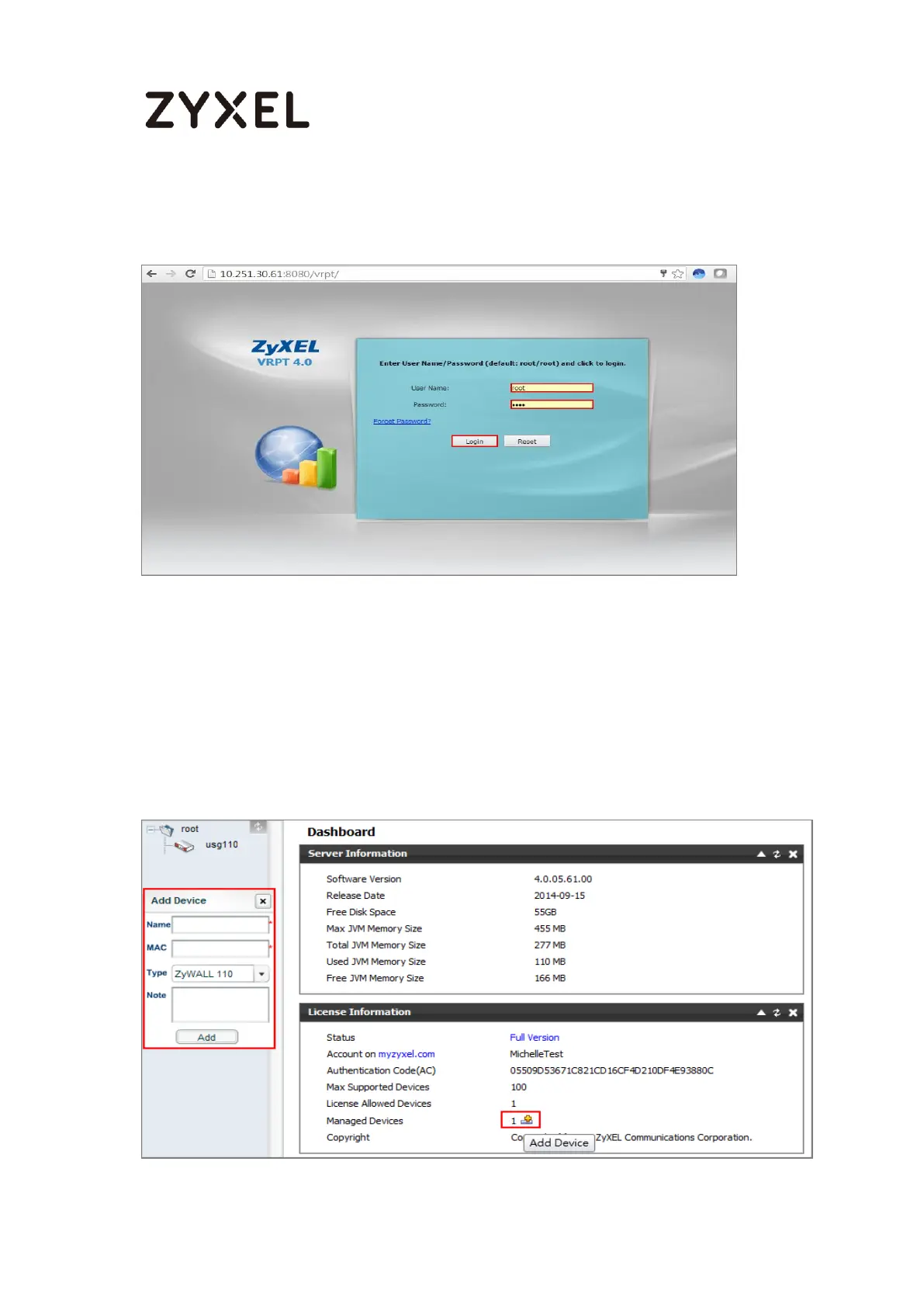8. Go to Dashboard > License Information > Manage Device, click Add Device, the