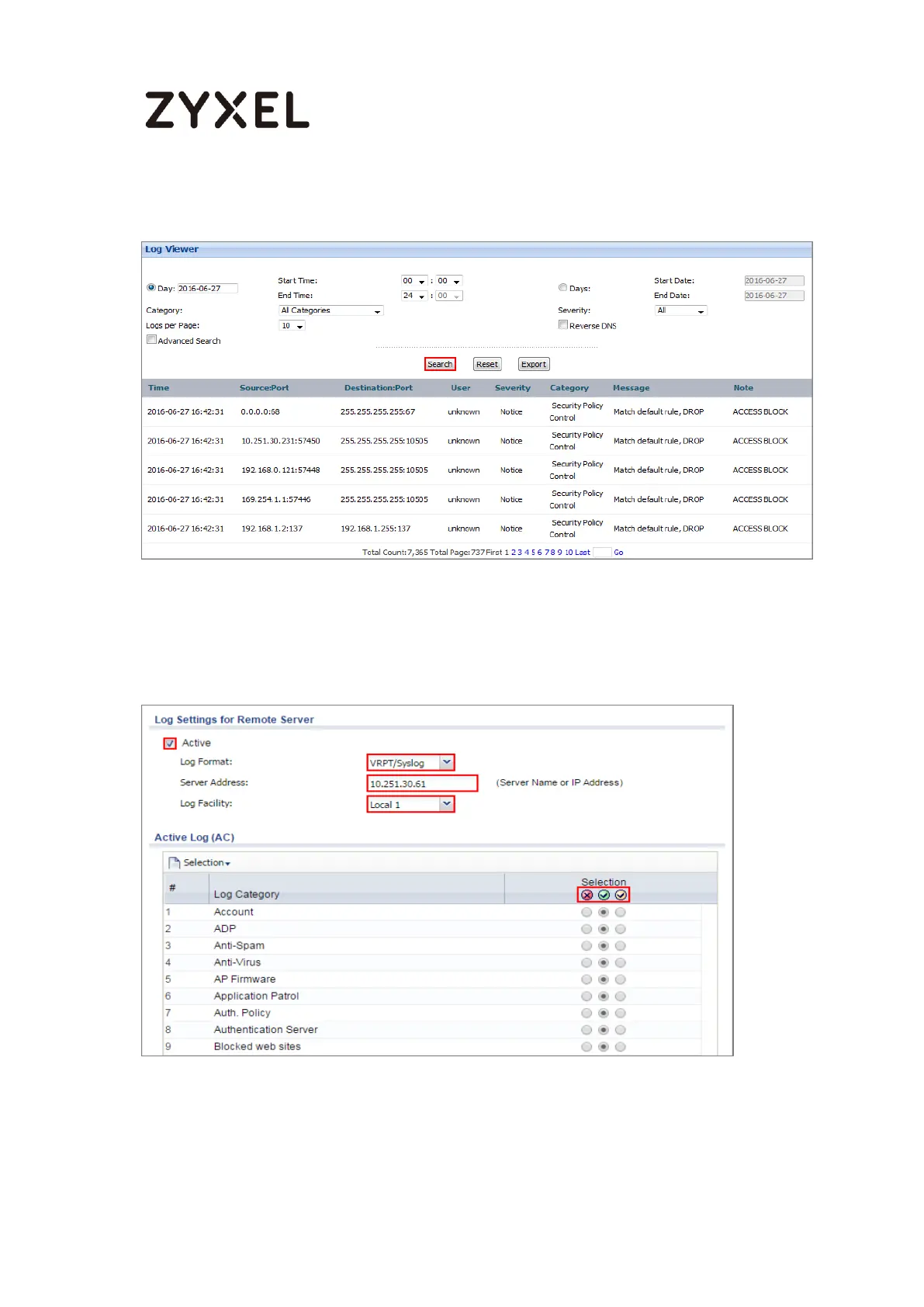 Figure 284 CONFIGURATION > Log & Report > Log Settings > Remote Server