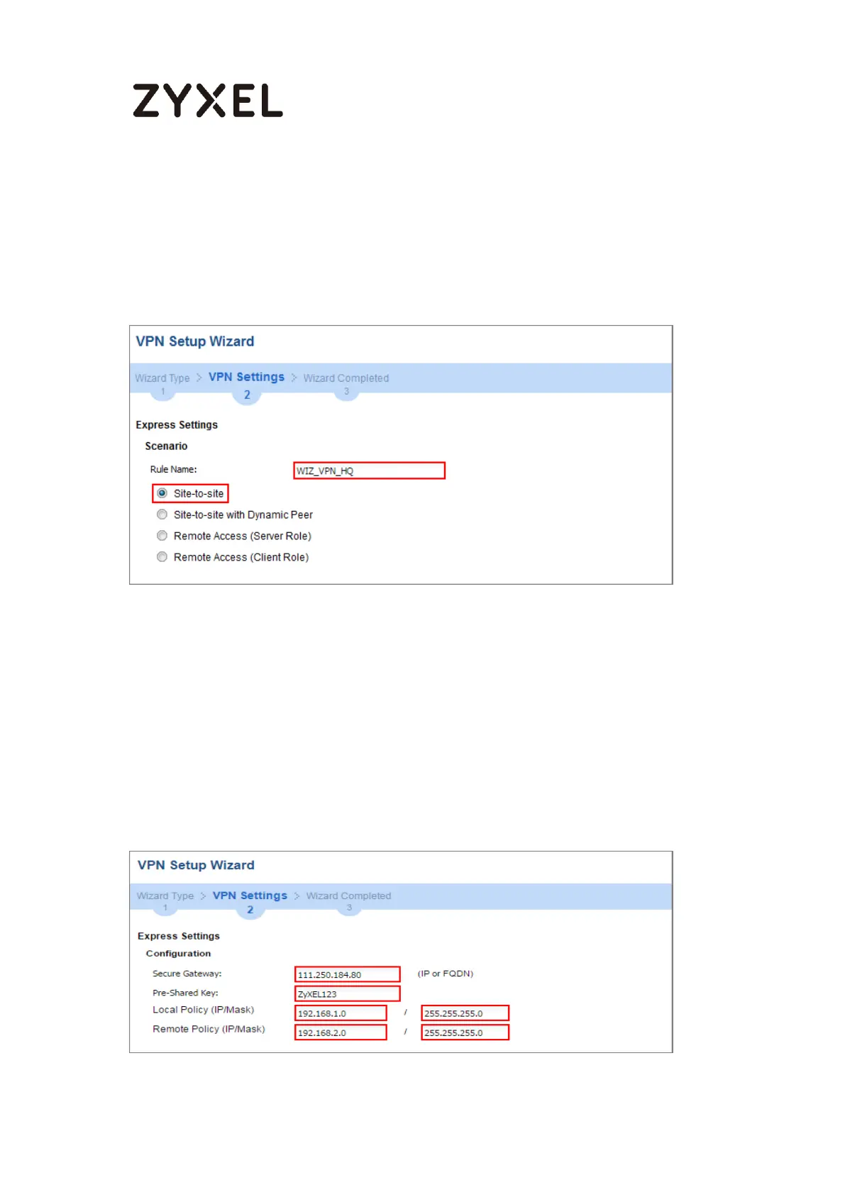 Figure 24 Quick Setup > VPN Setup Wizard > Wizard Type > VPN Settings (Scenario)