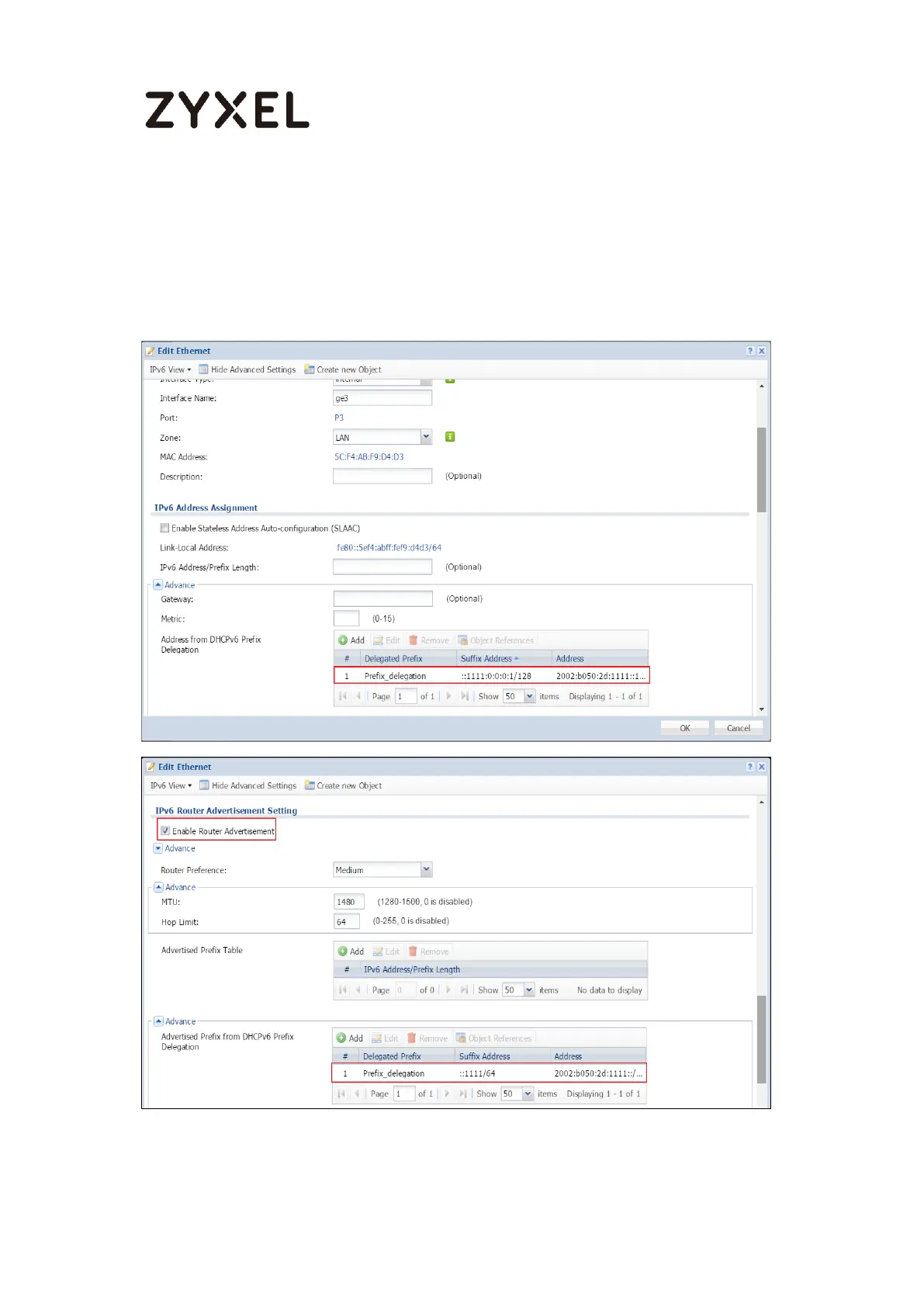 Address field. (The combined prefix 2001:b050:2d:1111::/64 will display for the LAN1’s
