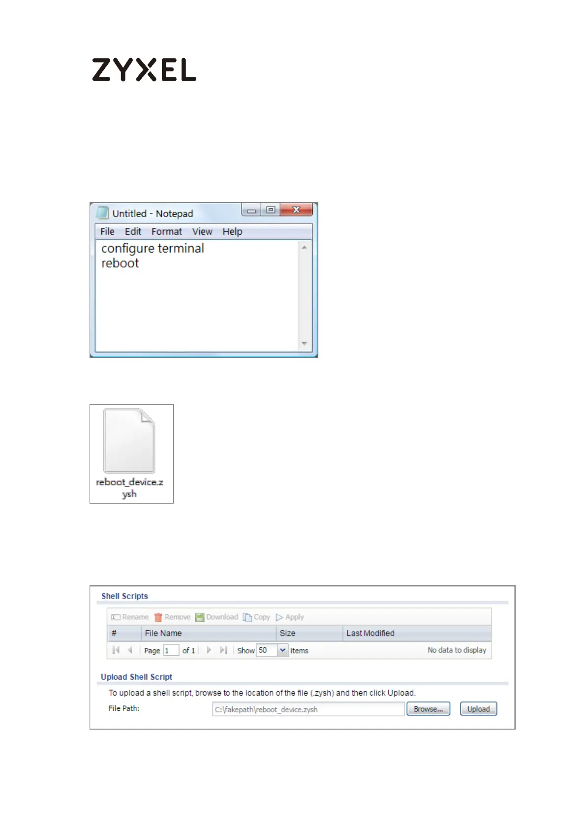 2 Save this file as "reboot_device.zysh"