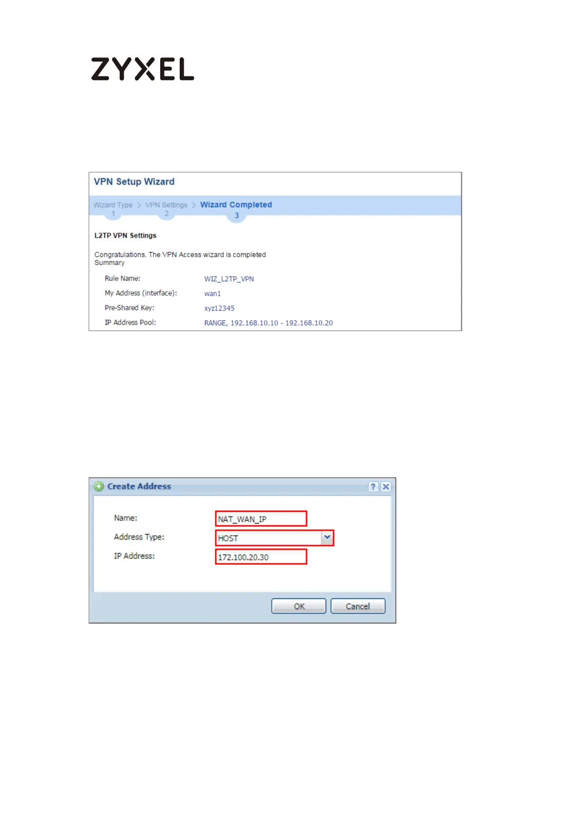 create an address object as the NAT router’s WAN IP address (in the example,