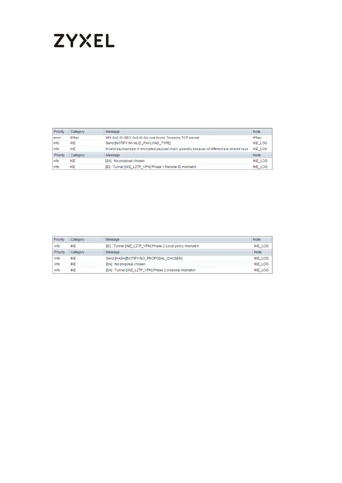 message as below, please check ZyWALL/USG Phase 2 Settings. ZyWALL/USG