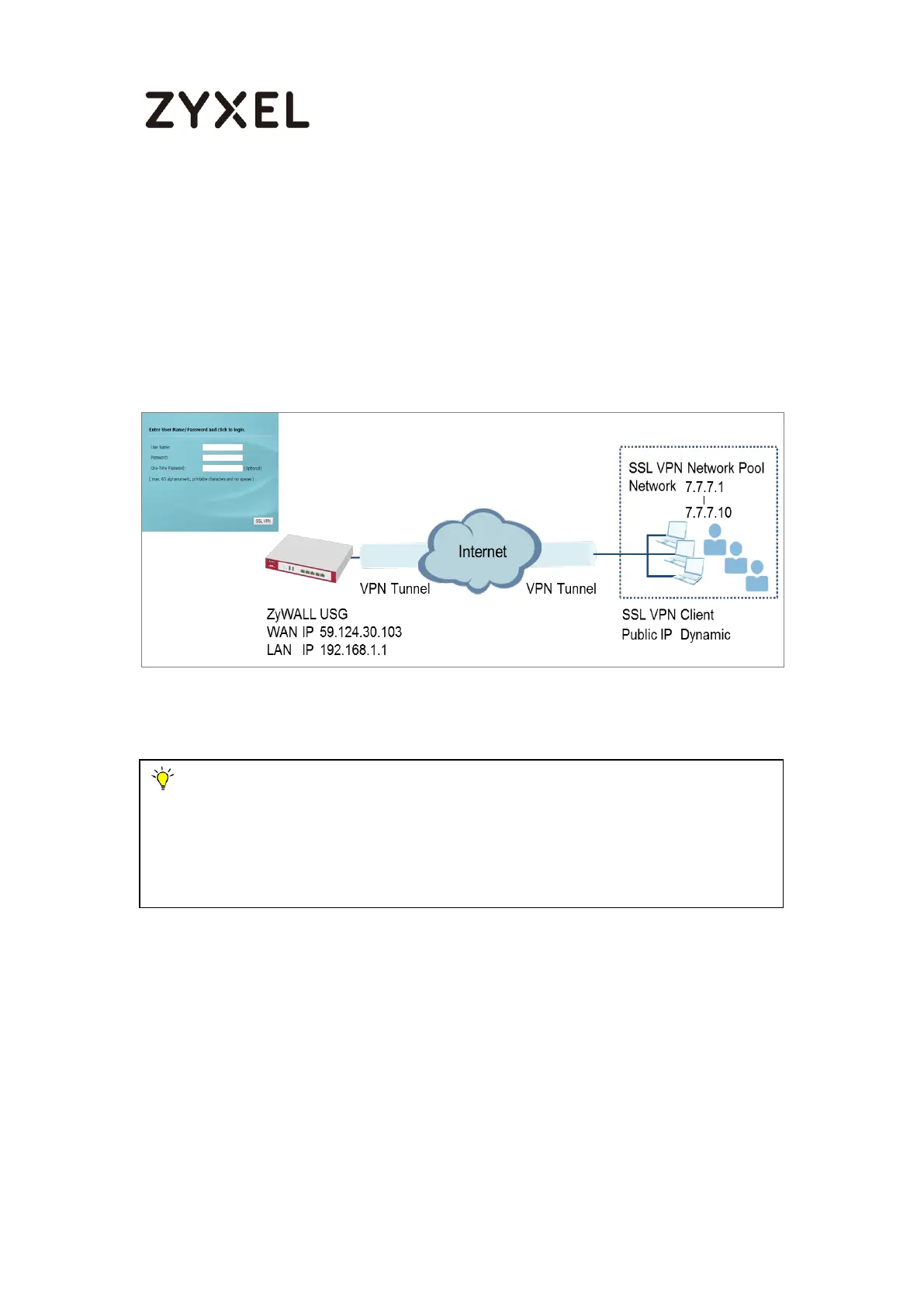 example was tested using USG60 (Firmware Version: ZLD 4.15).
