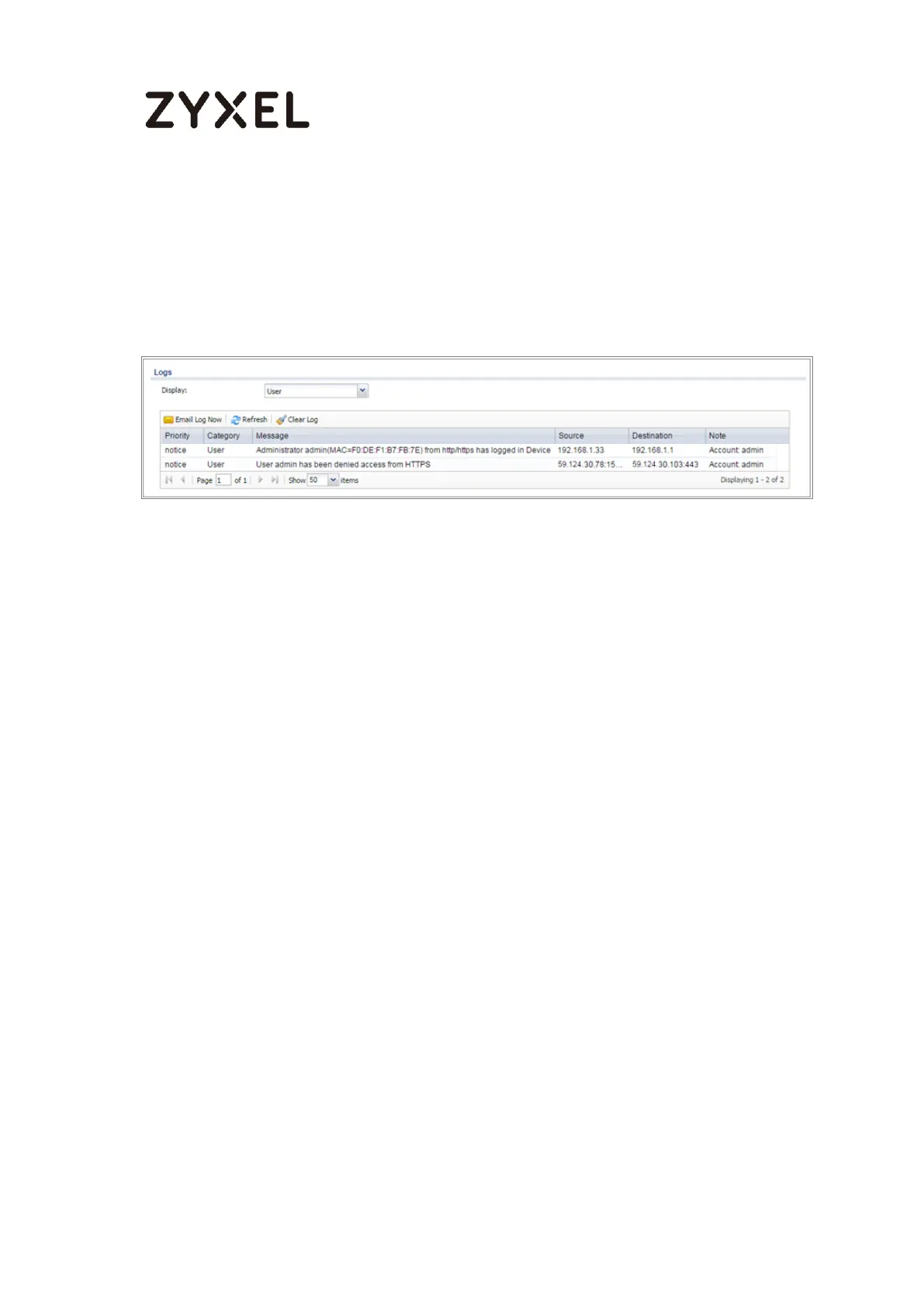 Go to MONITOR > Log. You can see that the admin login has been denied