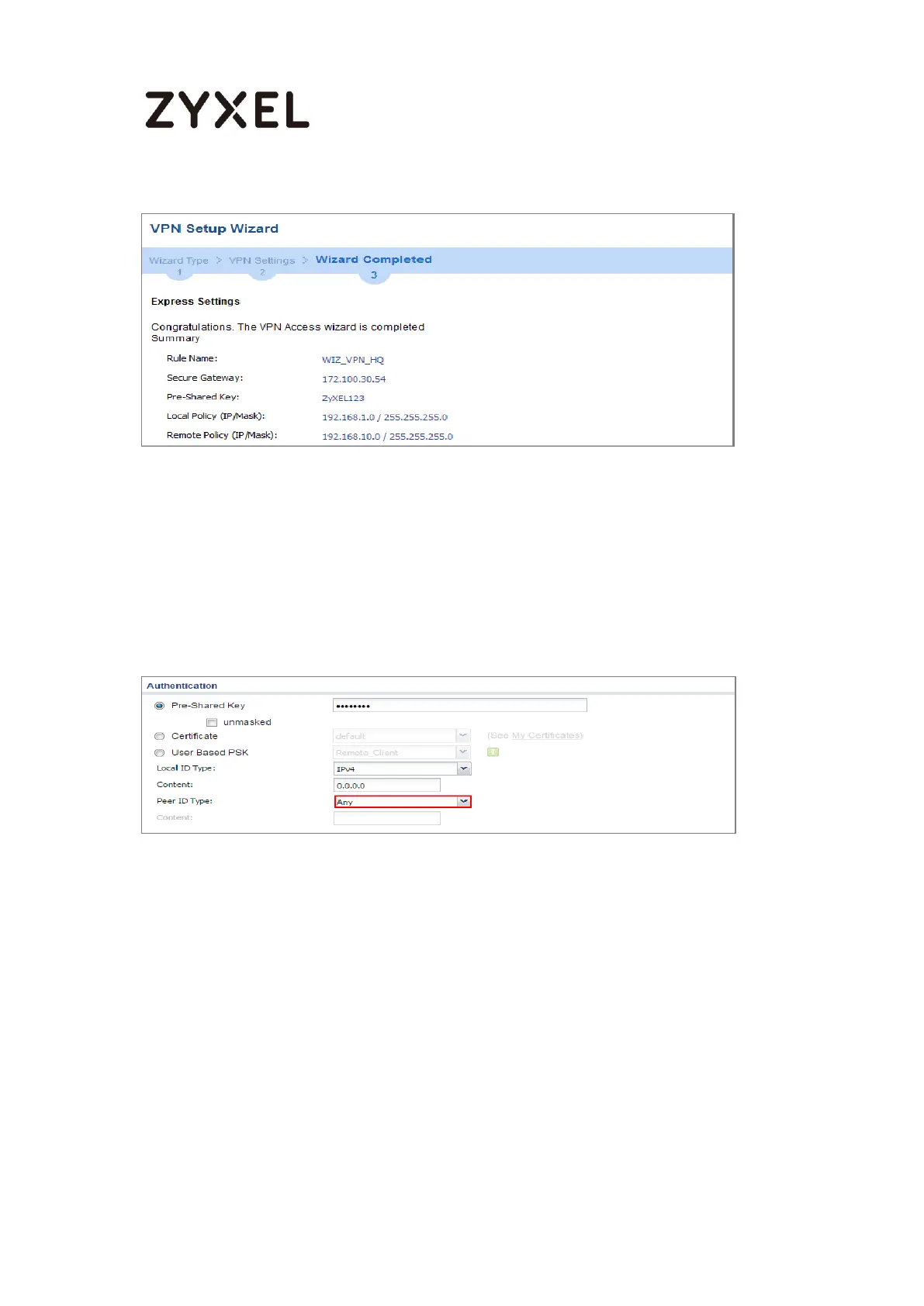 In the ZyWALL/USG, go to CONFIGURATION > Quick Setup > VPN Setup Wizard,