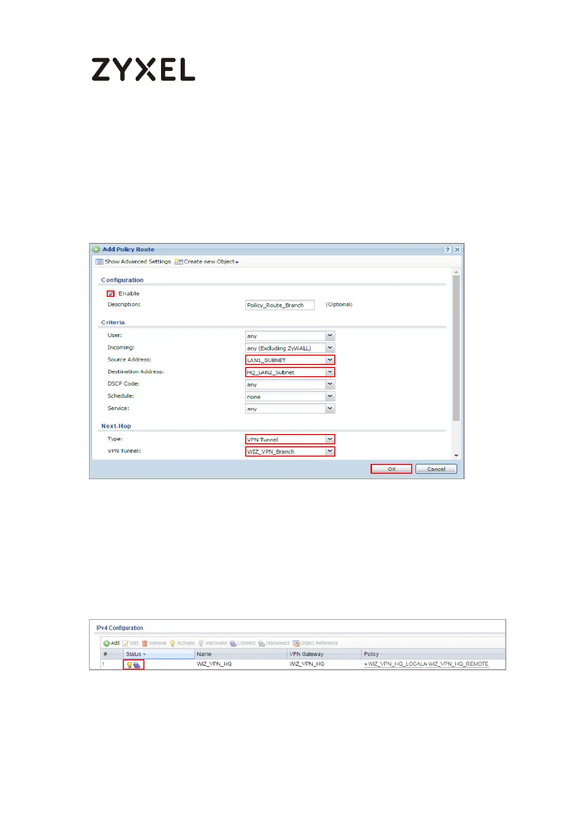 Go to ZYWALL/USG CONFIGURATION > VPN > IPSec VPN > VPN Connection, click