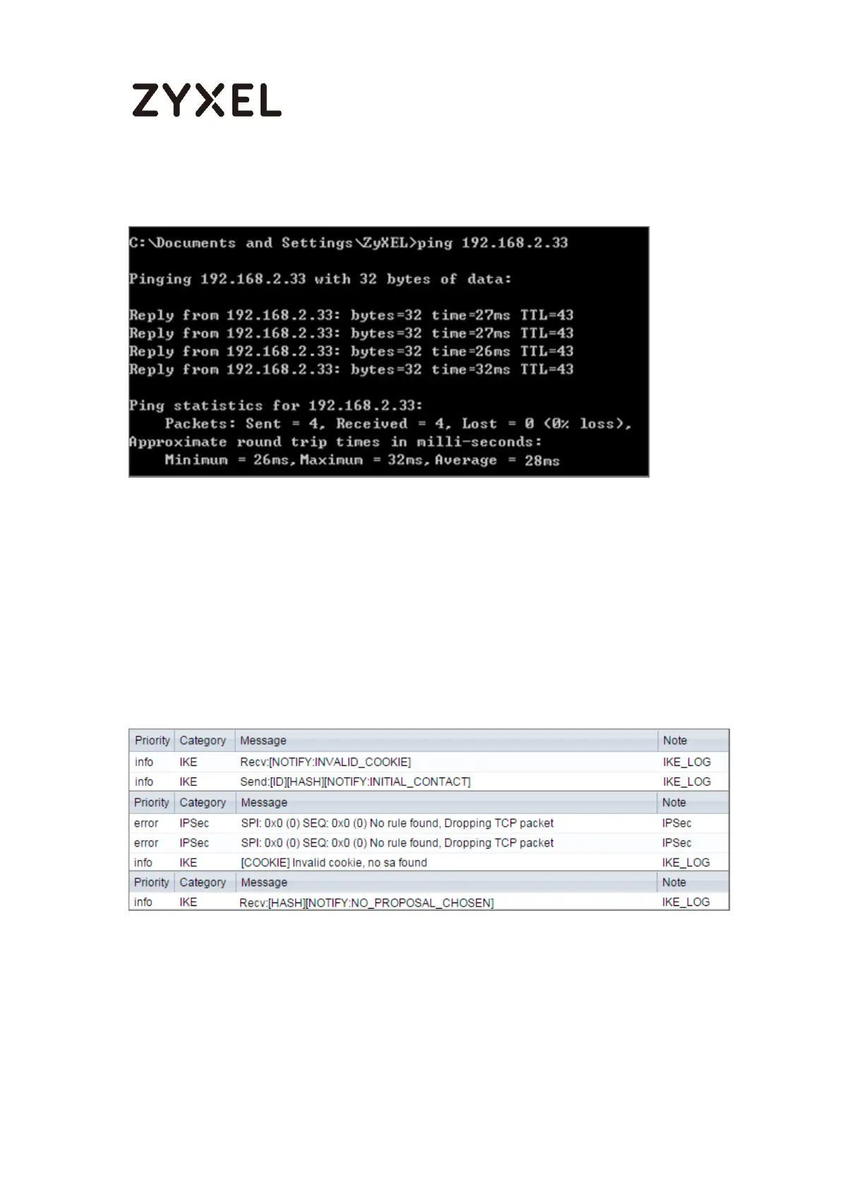 If you see below [info] or [error] log message, please check ZyWALL/USG Phase