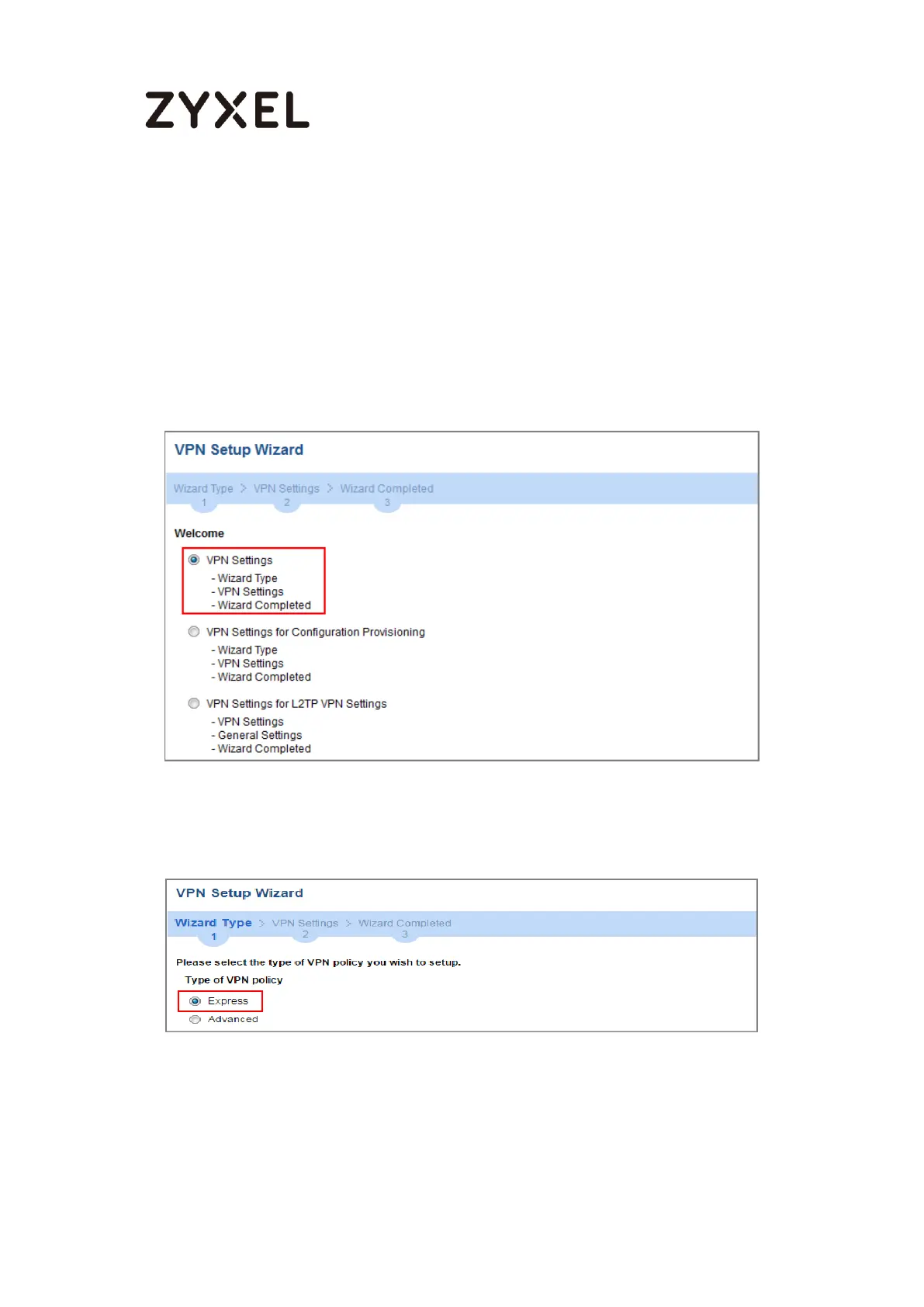 Figure 136 Quick Setup > VPN Setup Wizard > Wizard Type