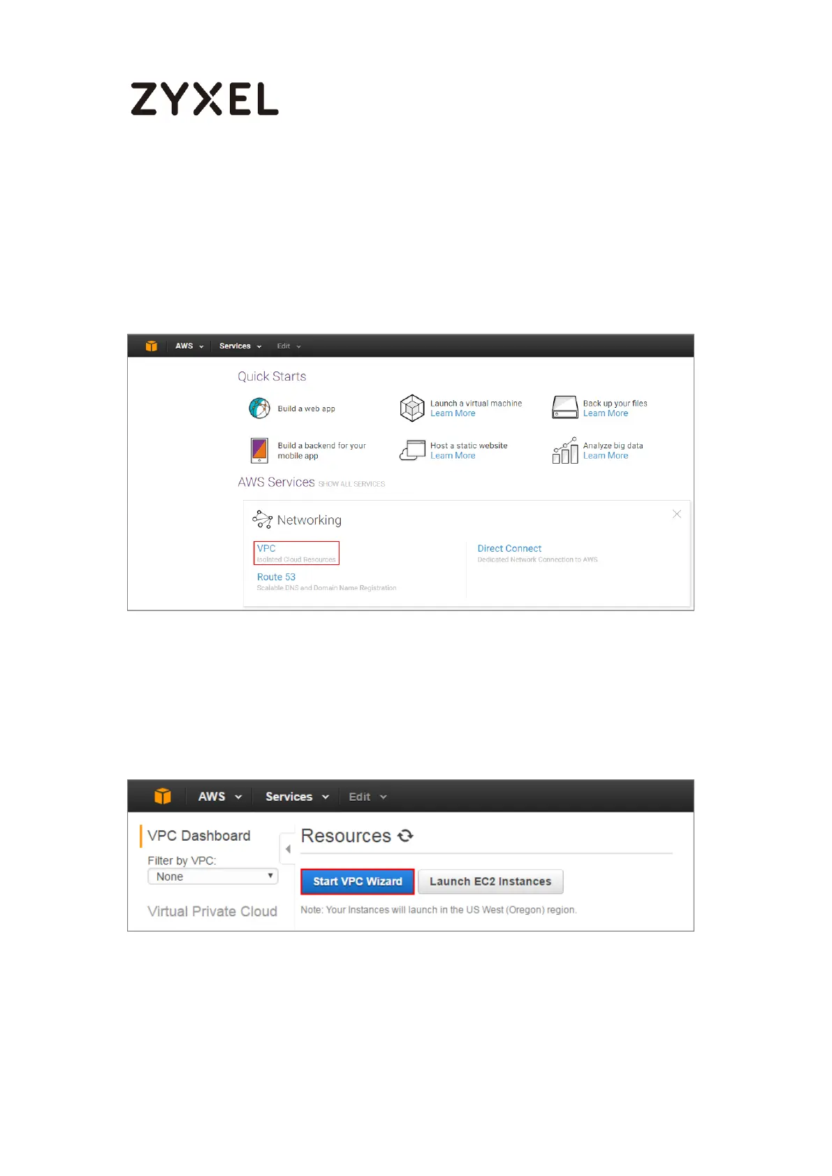 1 Sign into the Amazon AWS Management Console. Go to Networking > VPC.