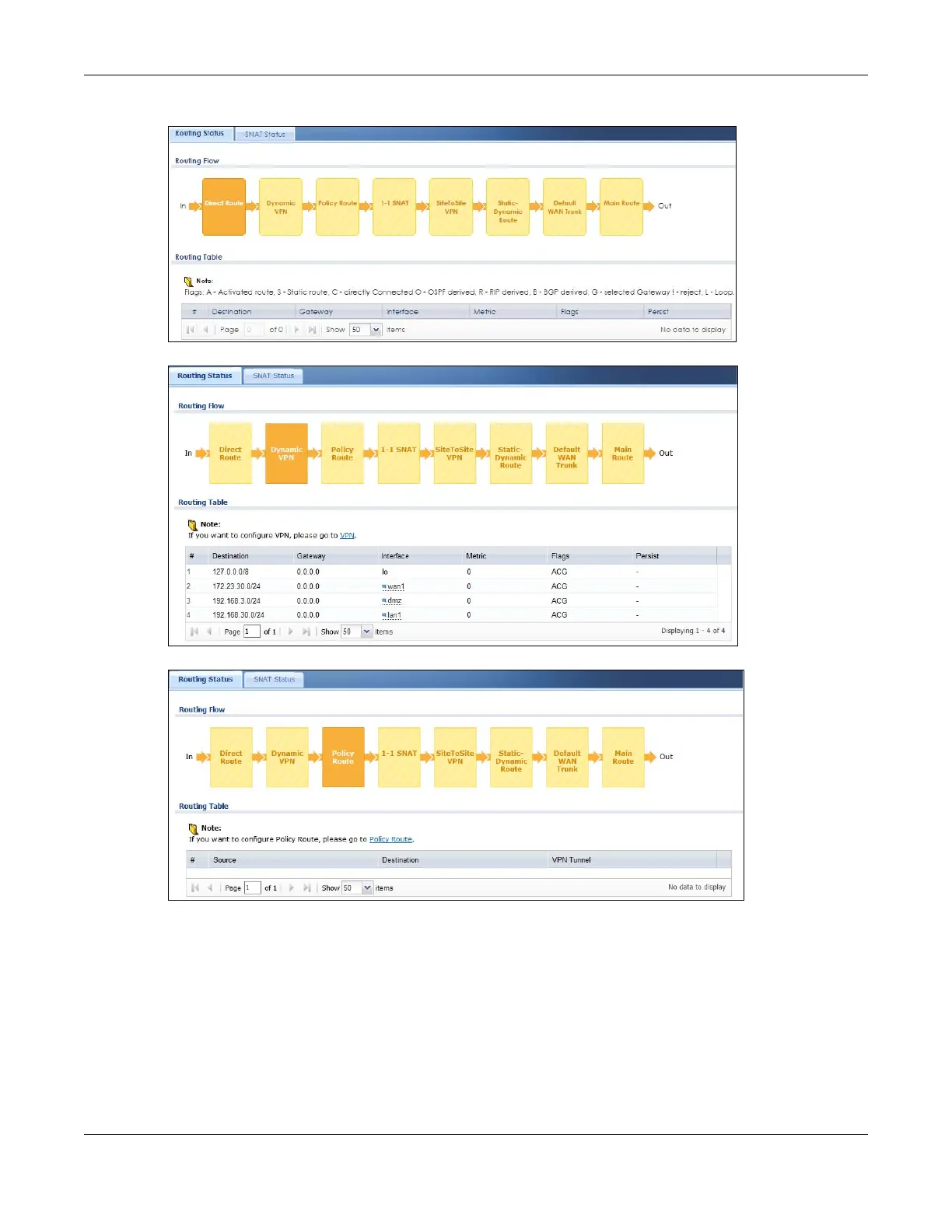 Figure 726 Maintenance > Packet Flow Explore > Routing Status (Dynamic VPN)