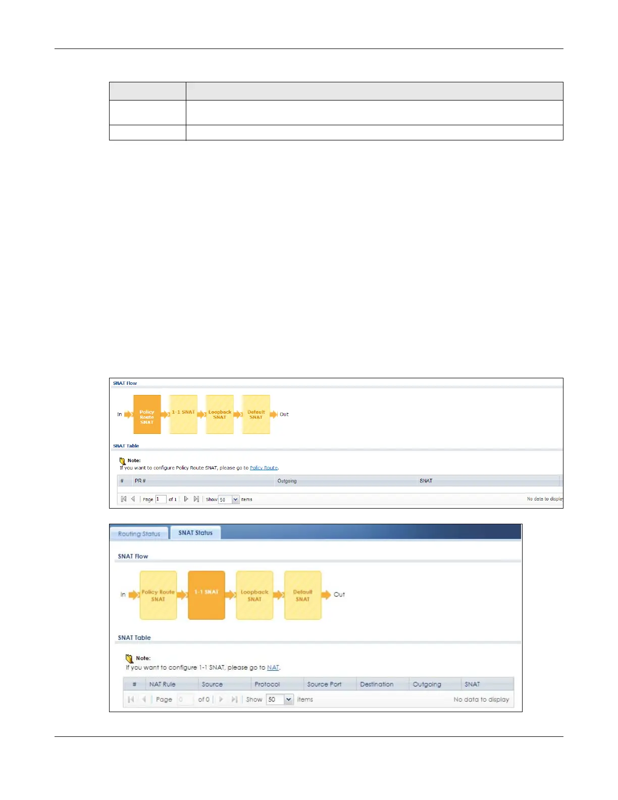 function box in the SNAT Flow section, the related SNAT rules (activated) will display in the SNAT Table