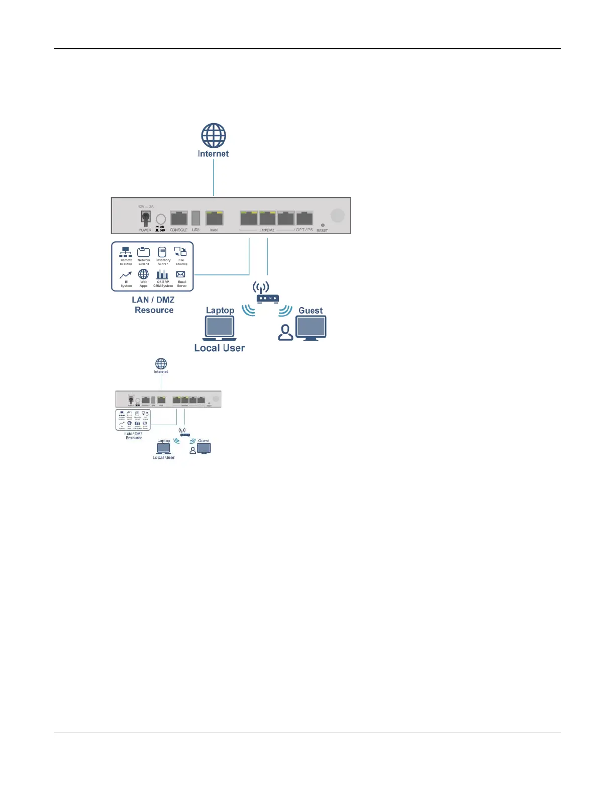 resources connected to the LAN ports and Internet access.