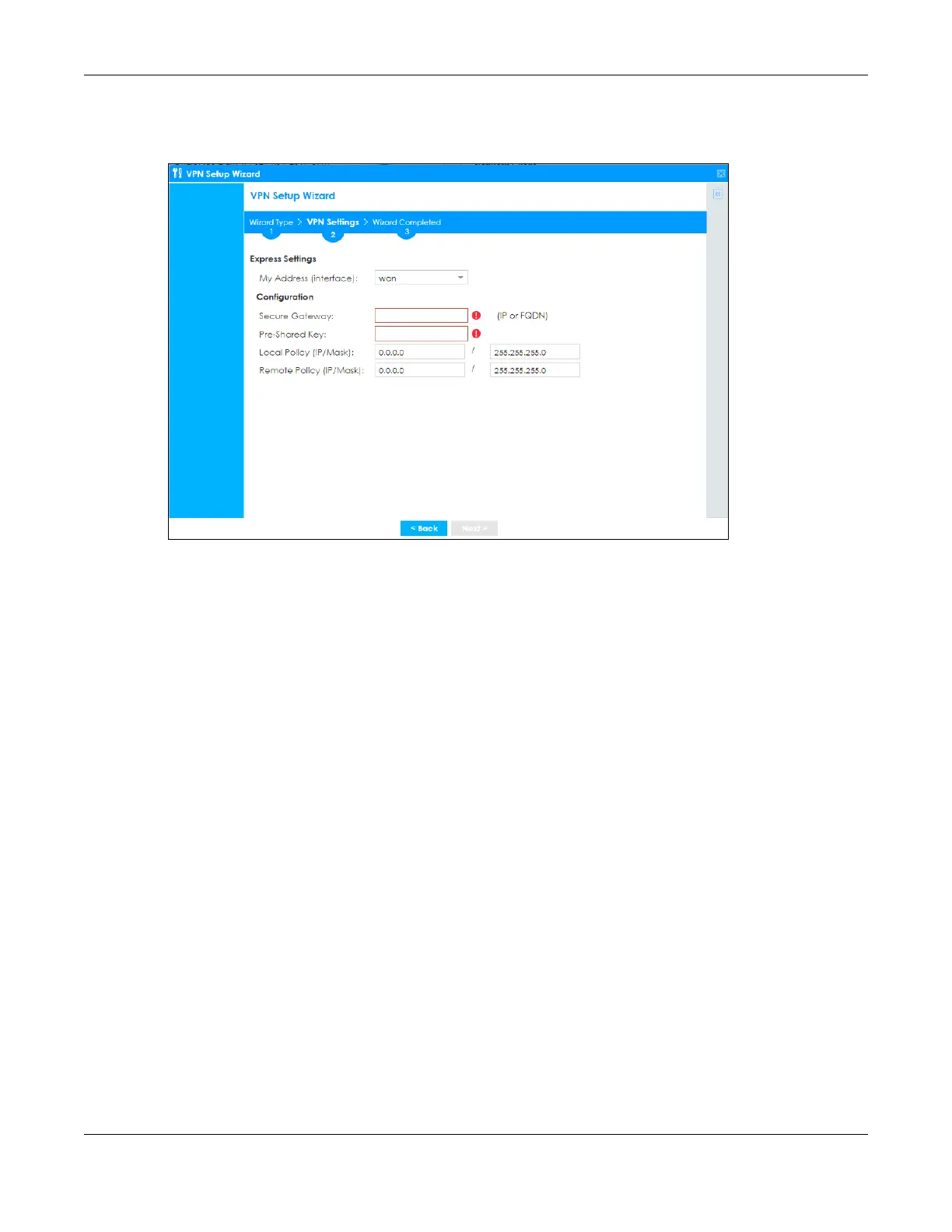 • Pre-Shared Key: Type the password. Both ends of the VPN tunnel must use the same password. Use up