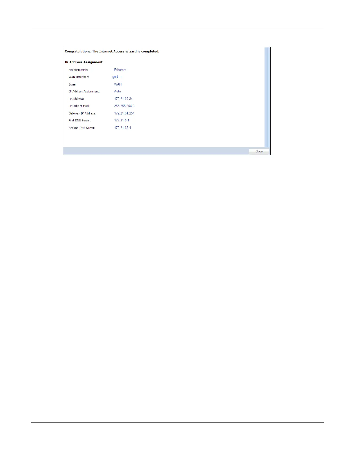 • Zone: This field displays to which security zone this interface and Internet connection will belong.