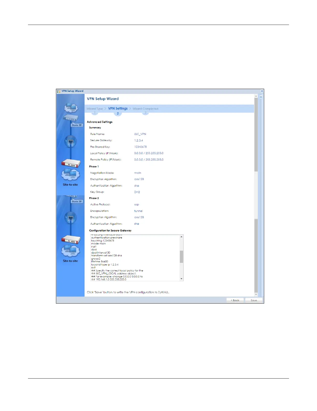 Figure 136 VPN Advanced Wizard: Summary