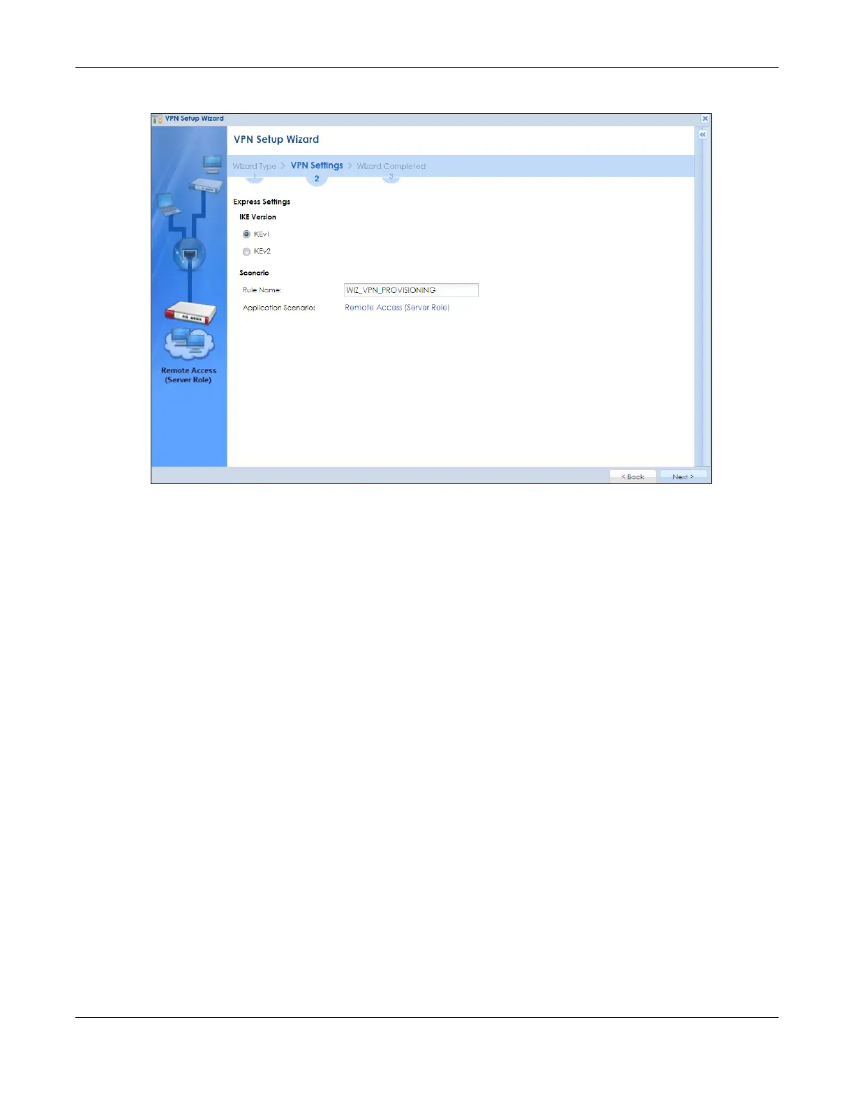 • Application Scenario: Only the Remote Access (Server Role) is allowed in this wizard. It allows