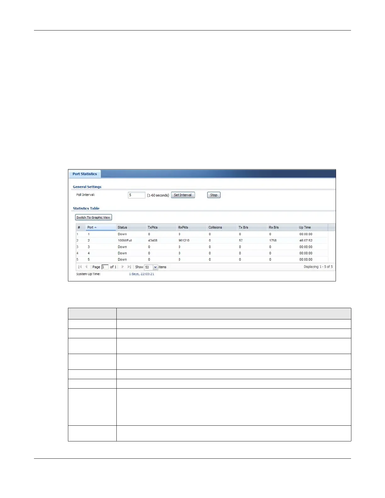 TxPkts This field displays the number of packets transmitted from the Zyxel Device on the physical port