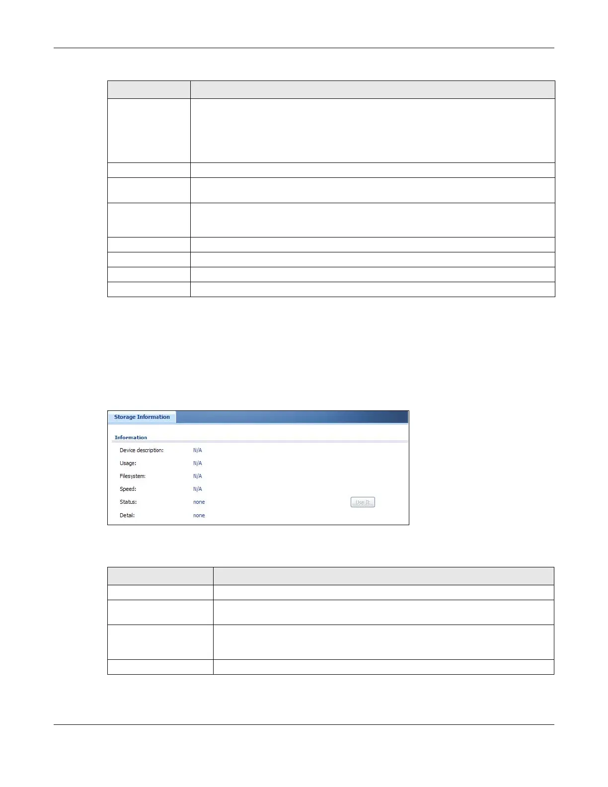 Usage This field displays how much of the USB storage device’s capacity is currently being