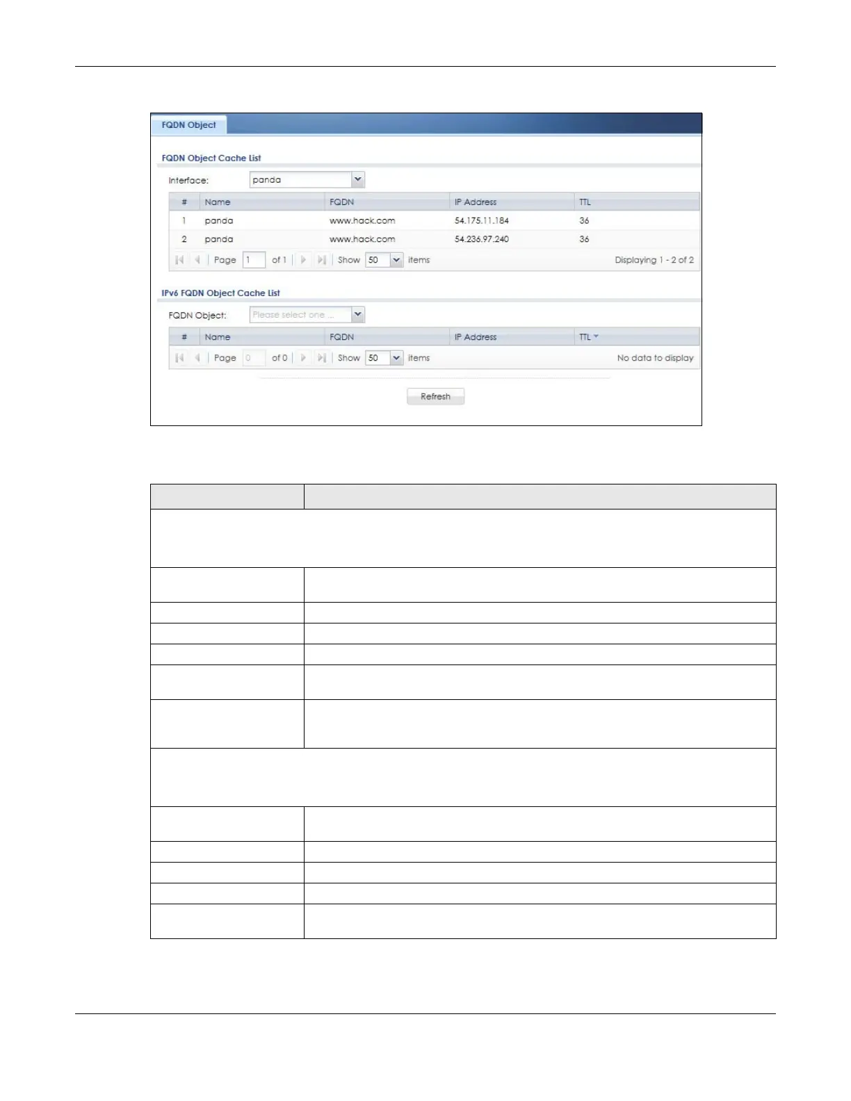 Table 53 Monitor > System Status > FQDN Object