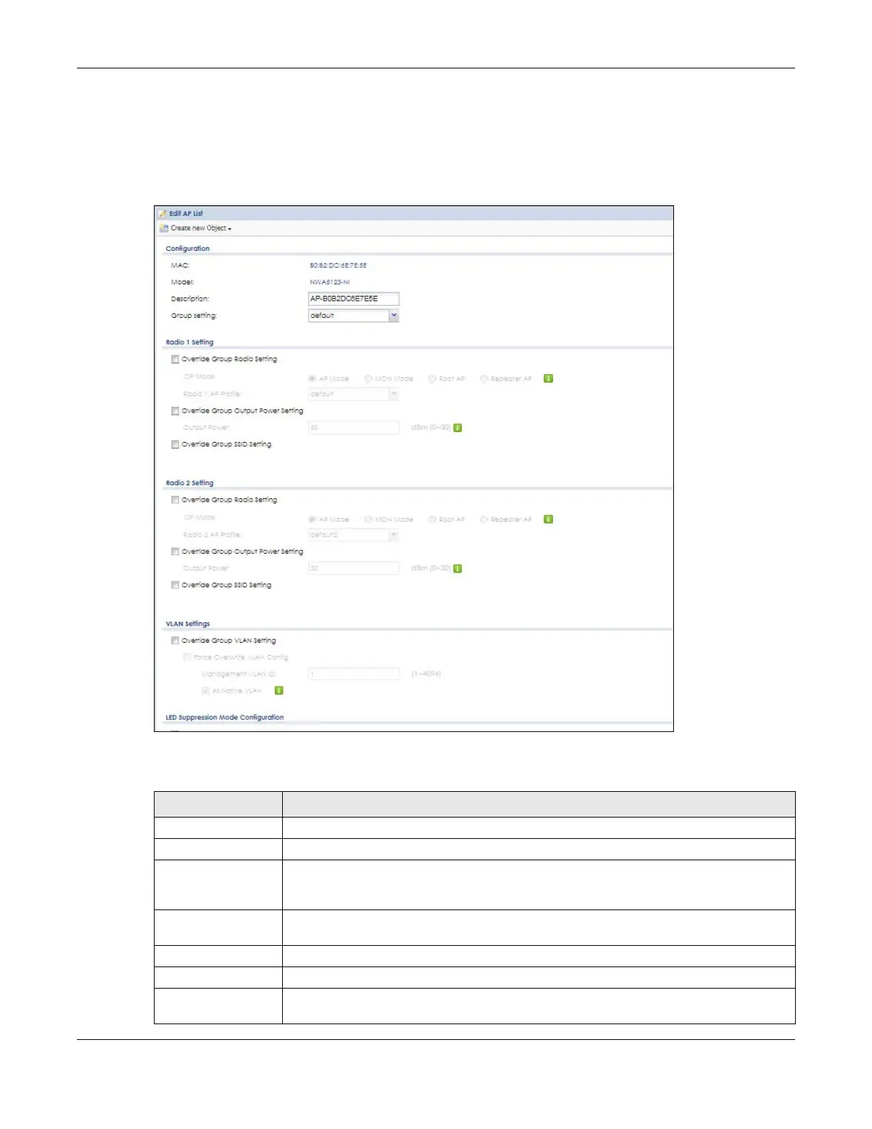 Description Enter a description for this AP. You can use up to 31 characters, spaces and underscores