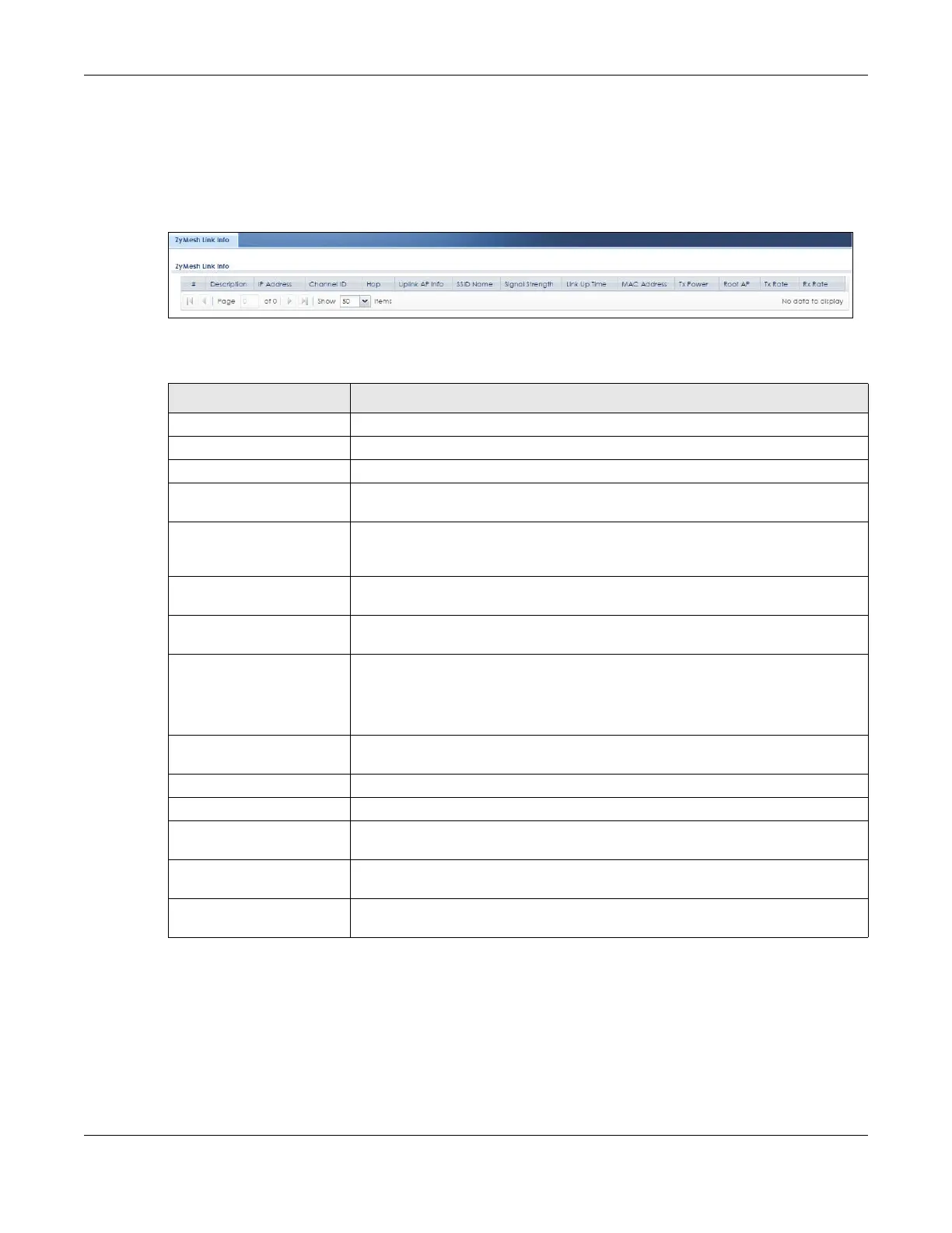 Table 62 Monitor > Wireless > ZyMesh