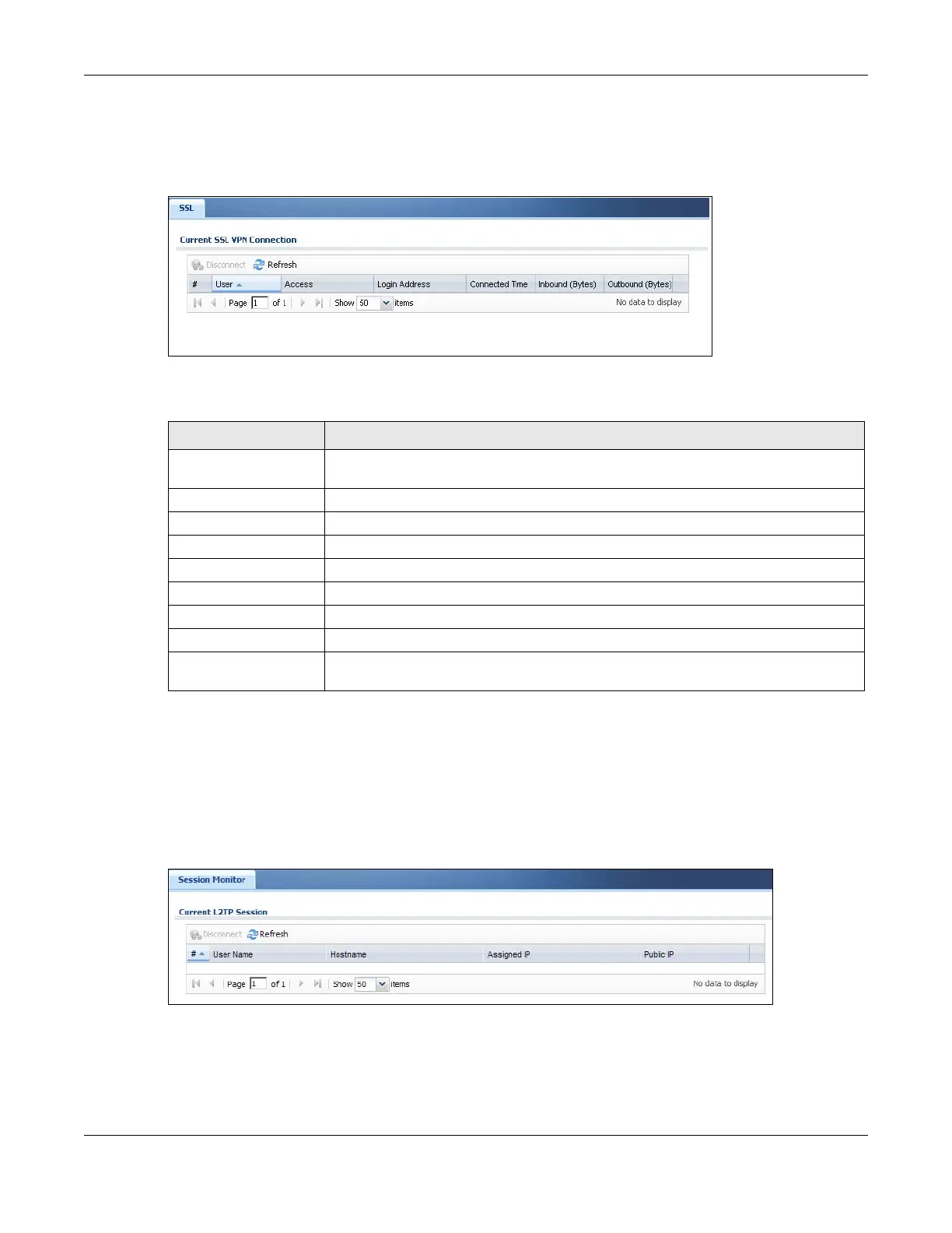 Table 73 Monitor > VPN Monitor > SSL