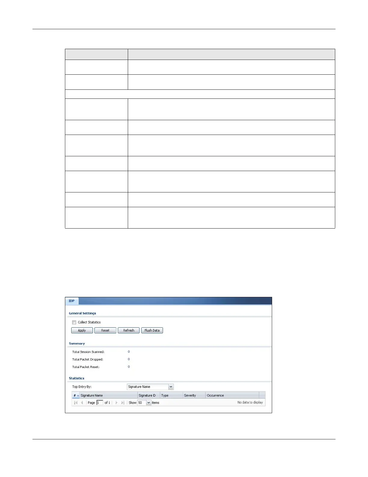 Click Monitor > UTM Statistics > IDP to display the following screen. This screen displays IDP (Intrusion
